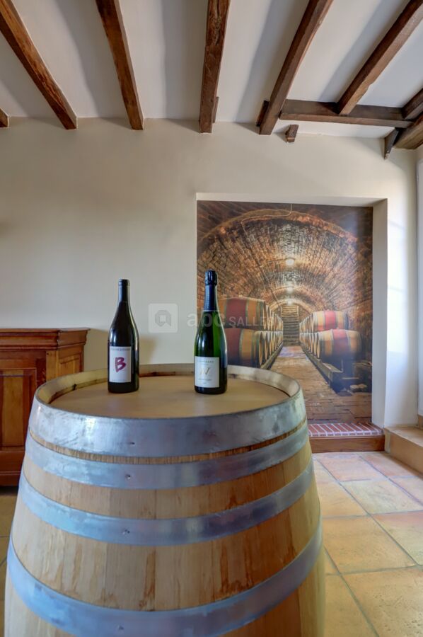 - Coin apéro/dégustation avec sa barrique et ses verres à vin.