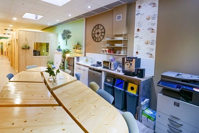Vous y trouverez également une table nomade de 12 postes de travail, vous offrant la possibilité de travailler quelques heures en attendant votre train, votre car ou juste pour travailler en partageant avec la communauté.