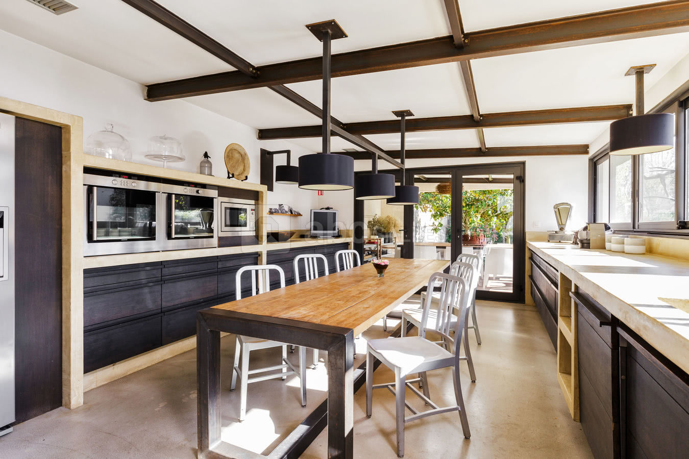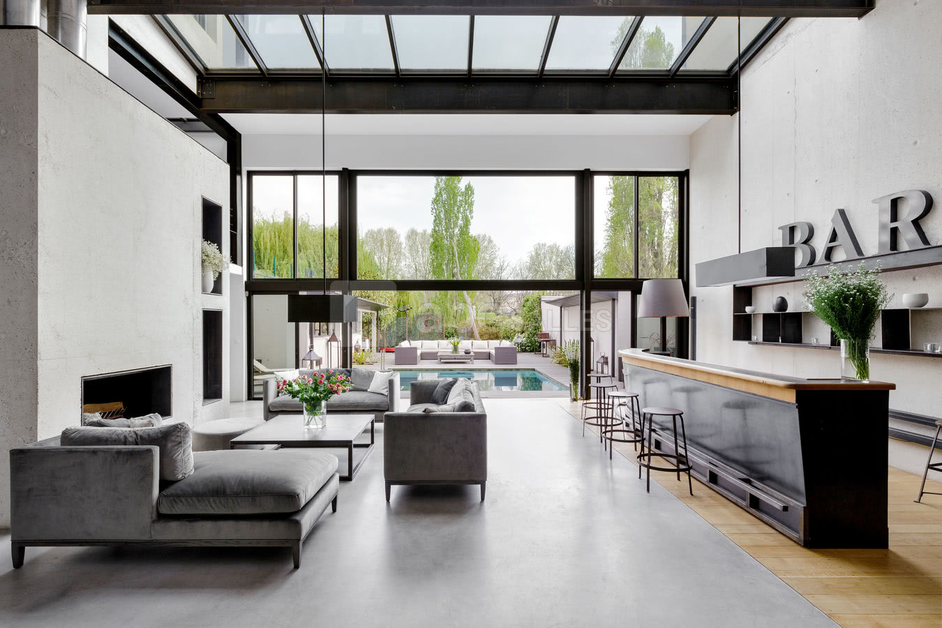 Le vaste salon, avec sa double hauteur sous plafond, offre un espace de réception grandiose, qui pourra entièrement s'ouvrir sur la terrasse grâce à la baie vitrée escamotable. La cuisine professionnelle, avec vue sur la piscine, s’ouvre sur une terrasse couverte pour profiter du jardin même les jours de pluie. Au premier étage, la mezzanine offrira une nouvelle perspective sur le jardin et la piscine ; entièrement modulable, cet espace pourra être aménagé en espace lounge ou dînatoire, et le coin salon de musique équipé d’un piano à queue pourra accueillir de petits concerts pour accompagner vos apéritifs. La salle de travail, modulable en salle de projection, espace conférence ou salle de réunion, pourra au choix être ouverte sur le rez-de-chaussée ou être isolée par des rideaux opaques. Les 2 étages supérieurs sont occupés par les 4 suites de La Maison, offrant la possibilité de profiter d’autres espaces séparés pour des ateliers ou réunions. Entièrement pensée pour l’événementiel, La Maison est un lieu unique disposant à chaque niveau d’espaces de stockage, d’une buanderie et de WC invités. Accessible aux handicapés, équipée d’un ascenseur desservant chaque niveau, disposant d’un double parking et complètement modulable, La Maison est le lieu idéal pour un événement personnalisé, surprenant et hors du temps.