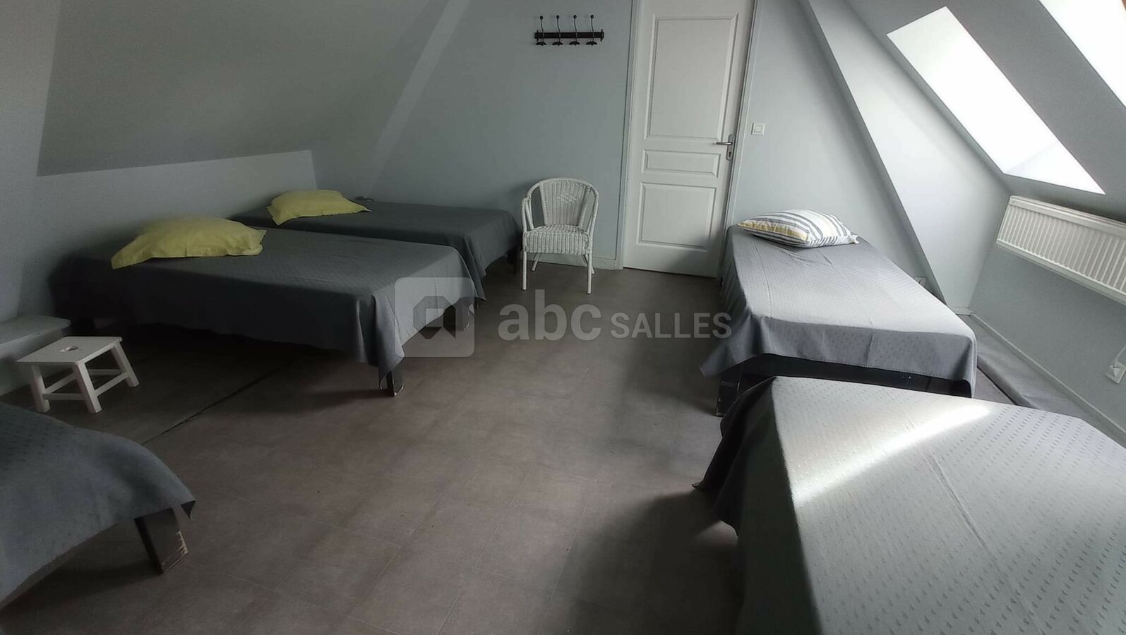 Salle de réception de 90 personnes assis et 18 couchages. Une partie terrasse avec salon de jardin pour pouvoir profiter des extérieurs, il n y a pas de vis a vis.Au rez de chaussée: 1 chambre avec suite parentale adapté également pour personne en handicap. A l'étage : 2 chambres parentales ainsi que 2 dortoirs (un dortoir de 6 couchages et un autre de 5 couchages).
