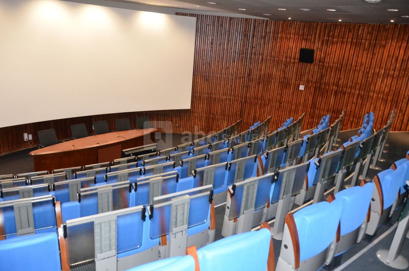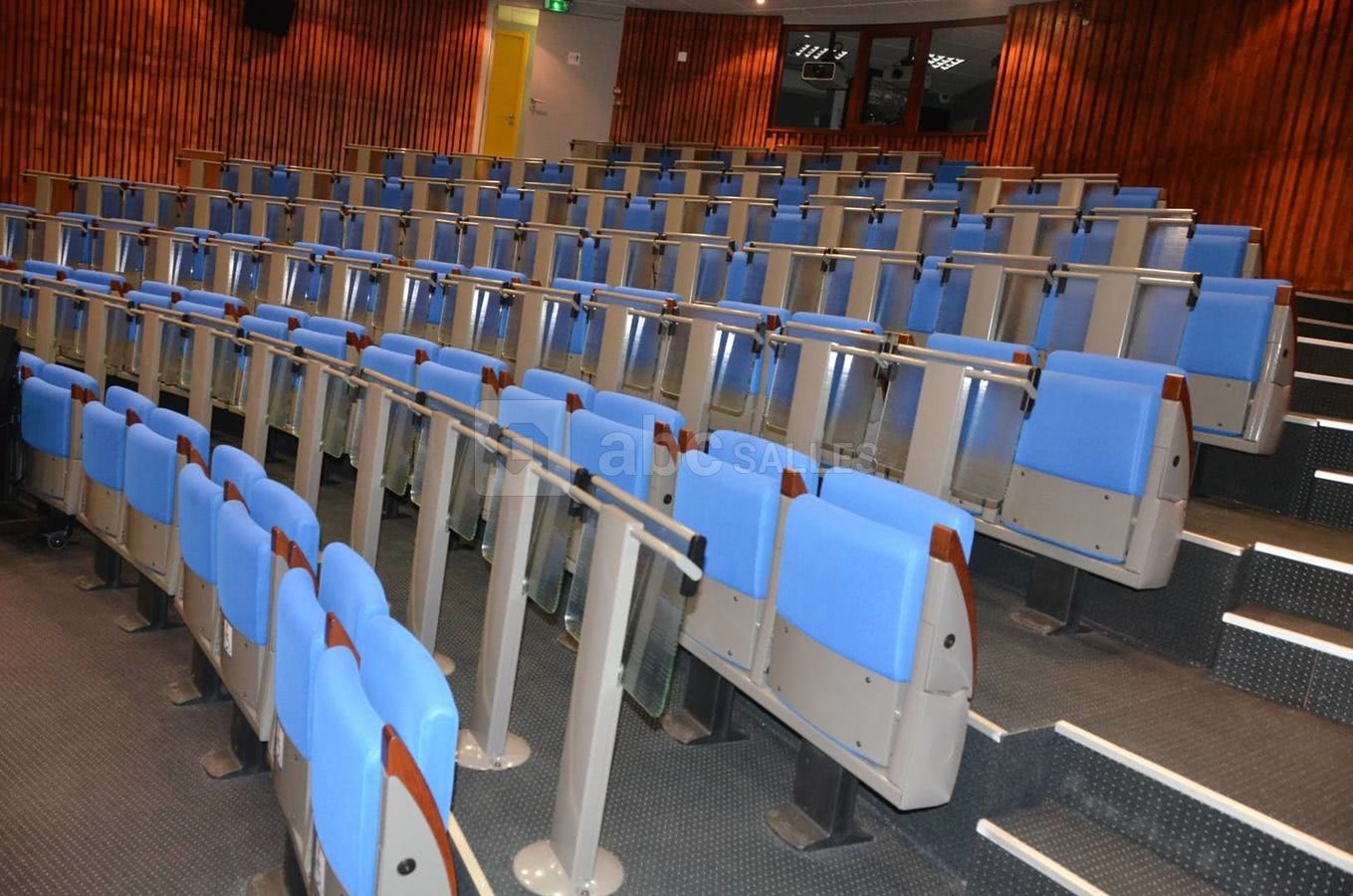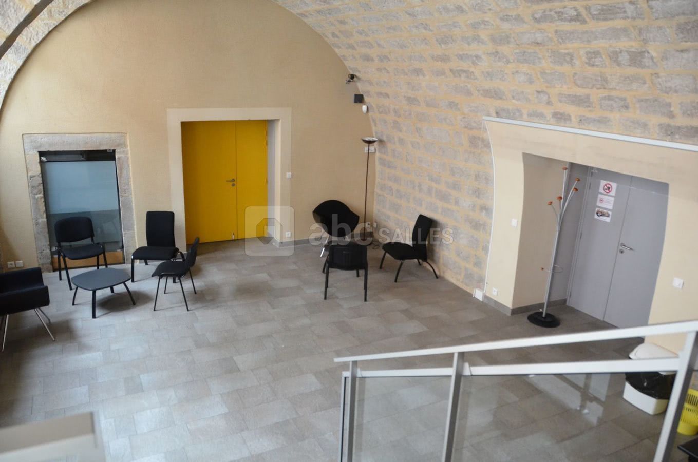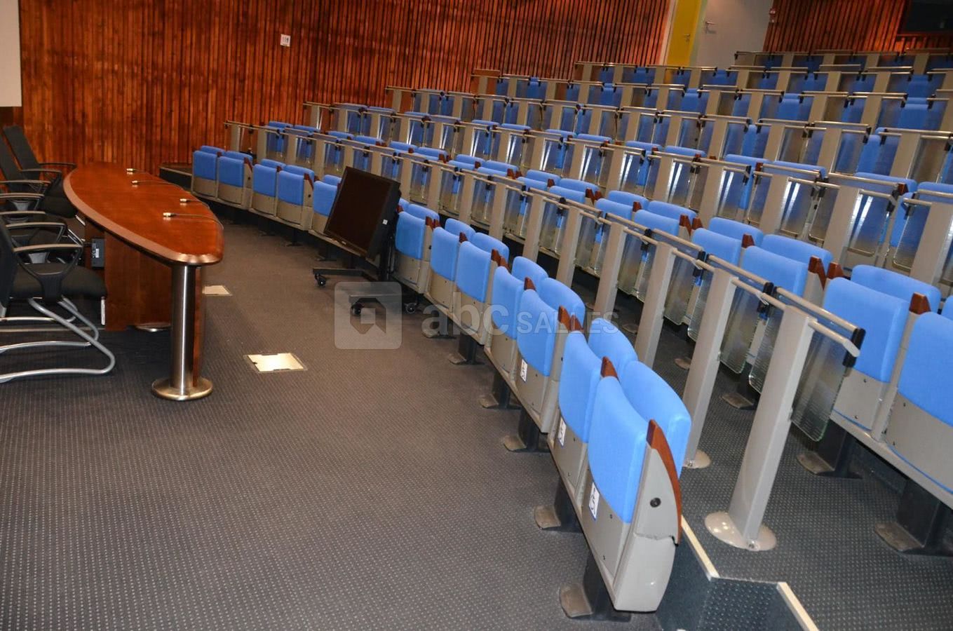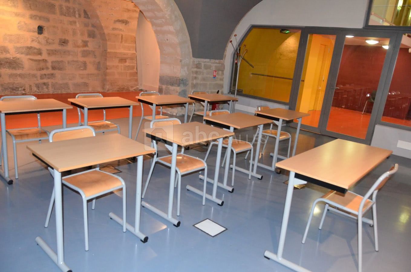 Dans l'auditorium, nous disposons d'un grand écran 8m X 3 m suspendu, parc de micros filaires et HF adaptés aux besoins, mur acoustique en bois verni, plafond abat-son gris, pupitre ovale 3,85 m x 0,80 m en bois pouvant accueillir 5 personnes. Espace réception : salle climatisée sous voûte de 50 m², bar équipé d'un réfrigérateur, lave-verres, armoire vestiaire, tables basses et fauteuils, accès direct sur l'extérieur, accès handicapés par monte personnes. 3 salles voûtées équipées de tables et chaises en bois, tableau blanc, dont deux avec vidéo-projecteurs.