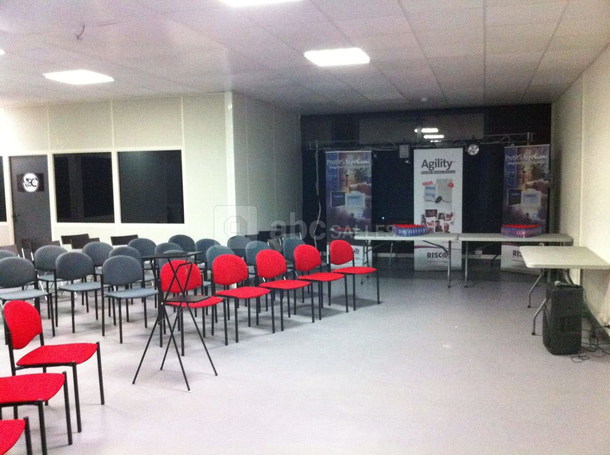 Le mobilier (tables, chaises, cafetière Senséo, micro onde ainsi que 4 grands réfrigérateurs) vous sont fourni.