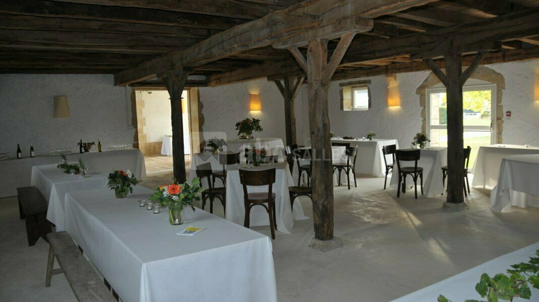 Notre bâtiment de la fin du XVIIIème siècle restauré à l'ancienne abrite une salle de réception chauffée pouvant accueillir entre 150 et 200 personnes. Vous aurez à disposition un office traiteur tout équipé avec la possibilité d'organiser des barbecues géants à partir des produits du terroir.
