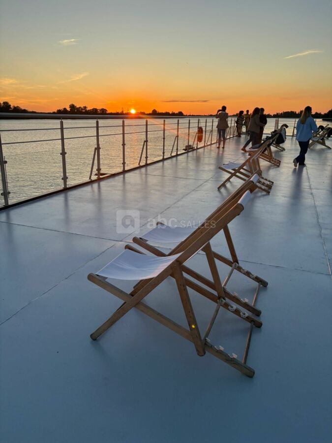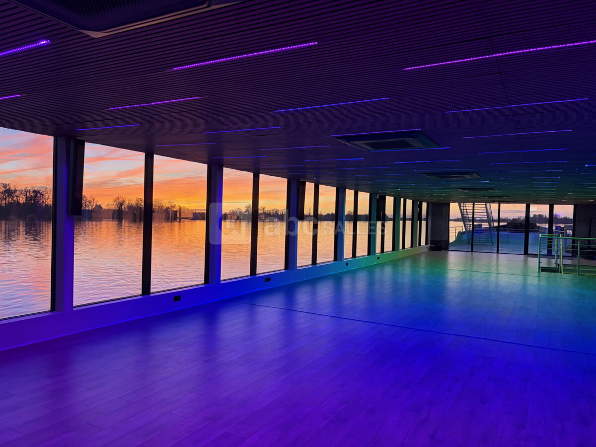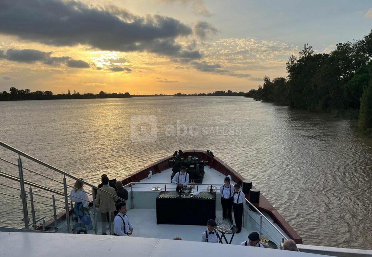 - 3 espaces sur la péniche pour varier les plaisirs : 1 salle principale entièrement vitrée et climatisée de 200 m², 1 salle sécurisée de 85 m² entièrement dédiée aux enfants, 1 roof top extérieur idéal pour le vin d'honneur de 210 m².