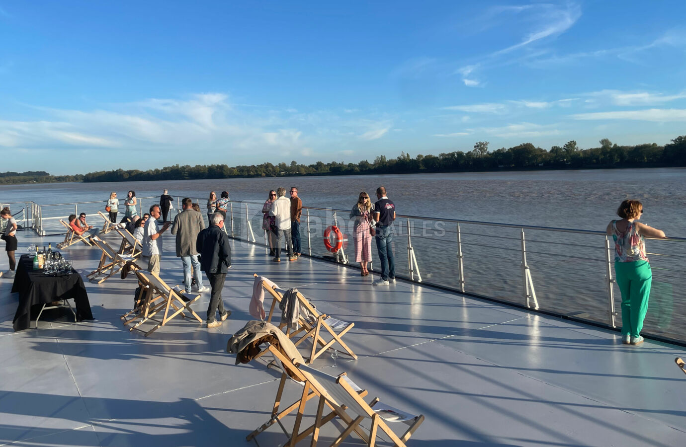 Oubliez les traditions et osez l'exceptionnel. Ici, pas jardin à la française ou de vignes à perte de vue, mais une atmosphère à la fois intimiste et grandiose. Une réception flottante, au gré des eaux majestueuses de la Dordogne sous le regard d’un château du XVIIIᵉ siècle niché dans un écrin de verdure. Offrez à vos convives un moment suspendu dans le temps, entre ciel et fleuve, où chaque instant devient un souvenir inoubliable.