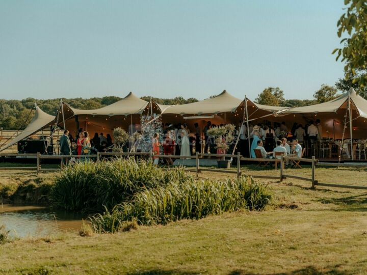 Le coin vin d'honneur est situé en bord d'étang sous une tente nomade. Vous pourrez ainsi profiter des beaux jours, et des couchers de soleils sur l'eau.