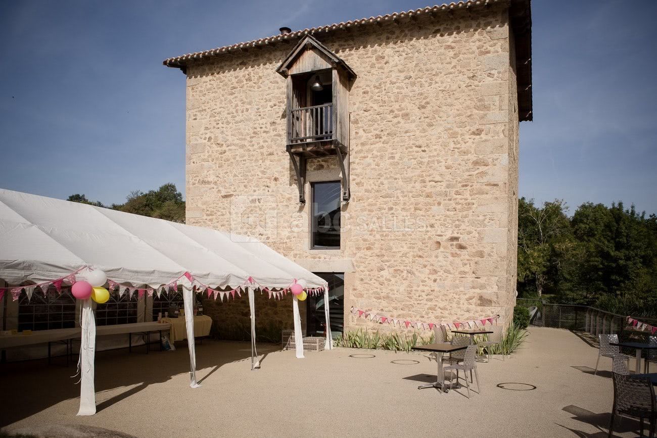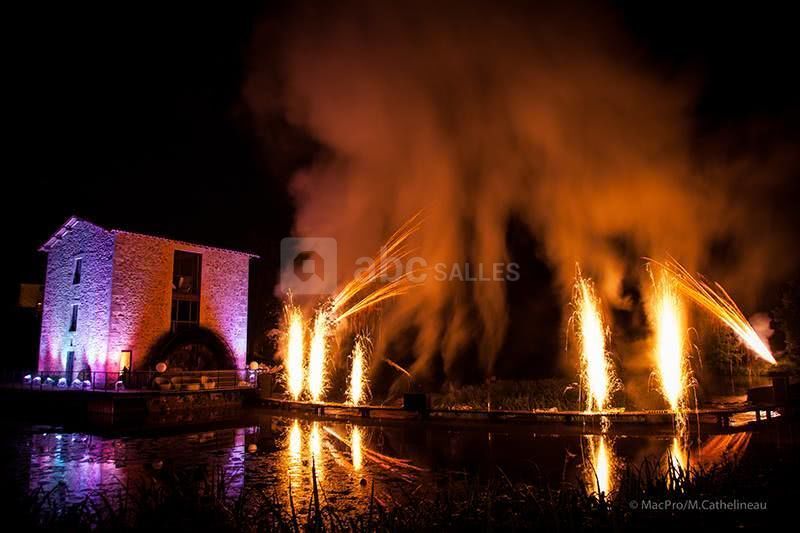 Le Salle du Moulin est composée de : 15 tables, 30 chaises, 1 cuisine équipée, un écran de projection, une télévision et DVD, une terrasse « Les pieds dans l’eau », une cour pouvant recevoir 120 personnes.