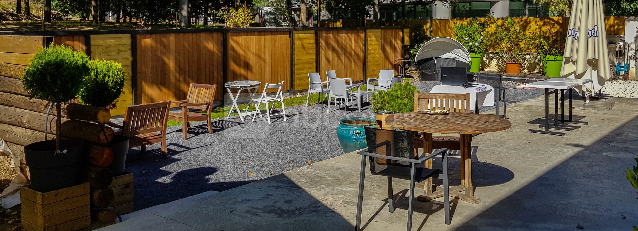 La lumière traverse les 350 m² et les 400 m² de jardin qui jouxtent l’édifice renforcent l’impression d’immersion. Parfait pour se ressourcer au soleil pendant les pauses ou les afterworks !