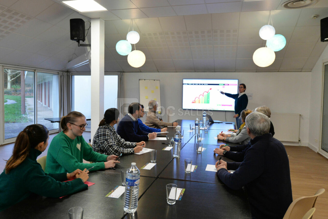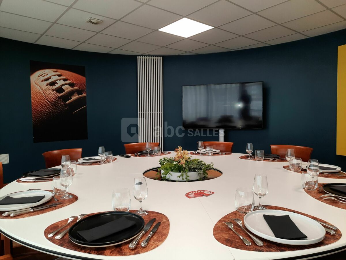 La salle ronde de 30 m² accueille des réunions ou des repas plus intimes, jusqu'à 13 personnes.