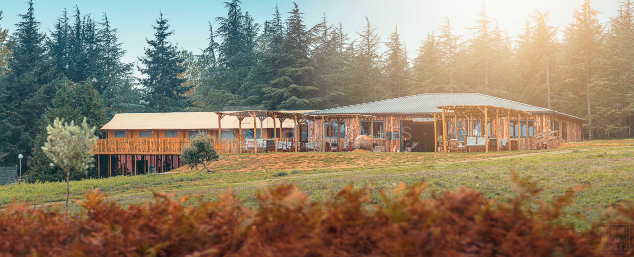 Pour l’hébergement, le Domaine propose une expérience unique en pleine nature. Vous pourrez loger jusqu'à 106 personnes dans des hébergements atypiques, tels que des lodges safari ou des cabanes trappeurs nichées sous les cèdres. Ces logements allient confort moderne et immersion totale dans la nature. Vous dormirez sous les étoiles tout en bénéficiant de tout le confort d'un hôtel, offrant à vos invités une expérience mémorable.