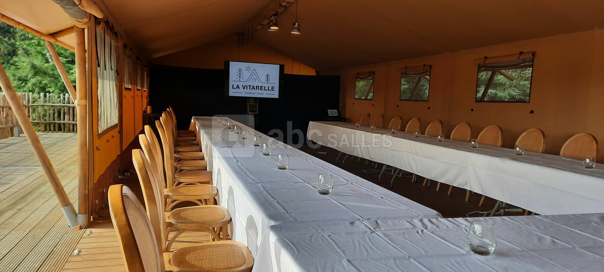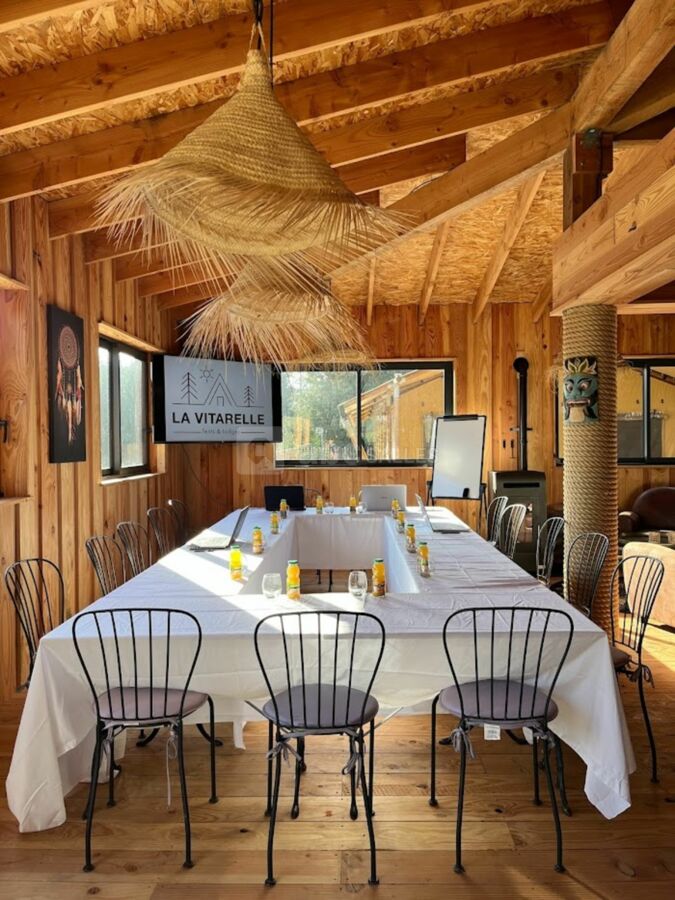 Le Domaine de La Vitarelle n'est pas seulement un lieu de réception, c'est aussi un endroit parfait pour des séminaires et événements professionnels. En pleine nature, loin des distractions habituelles, ce cadre propice à la créativité permet de prendre du recul, de stimuler les idées et de renforcer la cohésion d'équipe. Deux espaces de travail atypiques sont à votre disposition : la Tente nomade pour une expérience intérieure/ extérieure avec une capacité de 30 personnes en U ou 34 en classe, et le Salon cocooning, tout de bois vêtu pour une ambiance chaleureuse et zen, capable d'accueillir 20 personnes en U ou 30 en classe. Si vous souhaitez encore plus d'originalité, vous pouvez aménager votre espace de travail à l'extérieur, sur la terrasse de la piscine, dans l'une de nos clairières ou en plein cœur de la forêt.