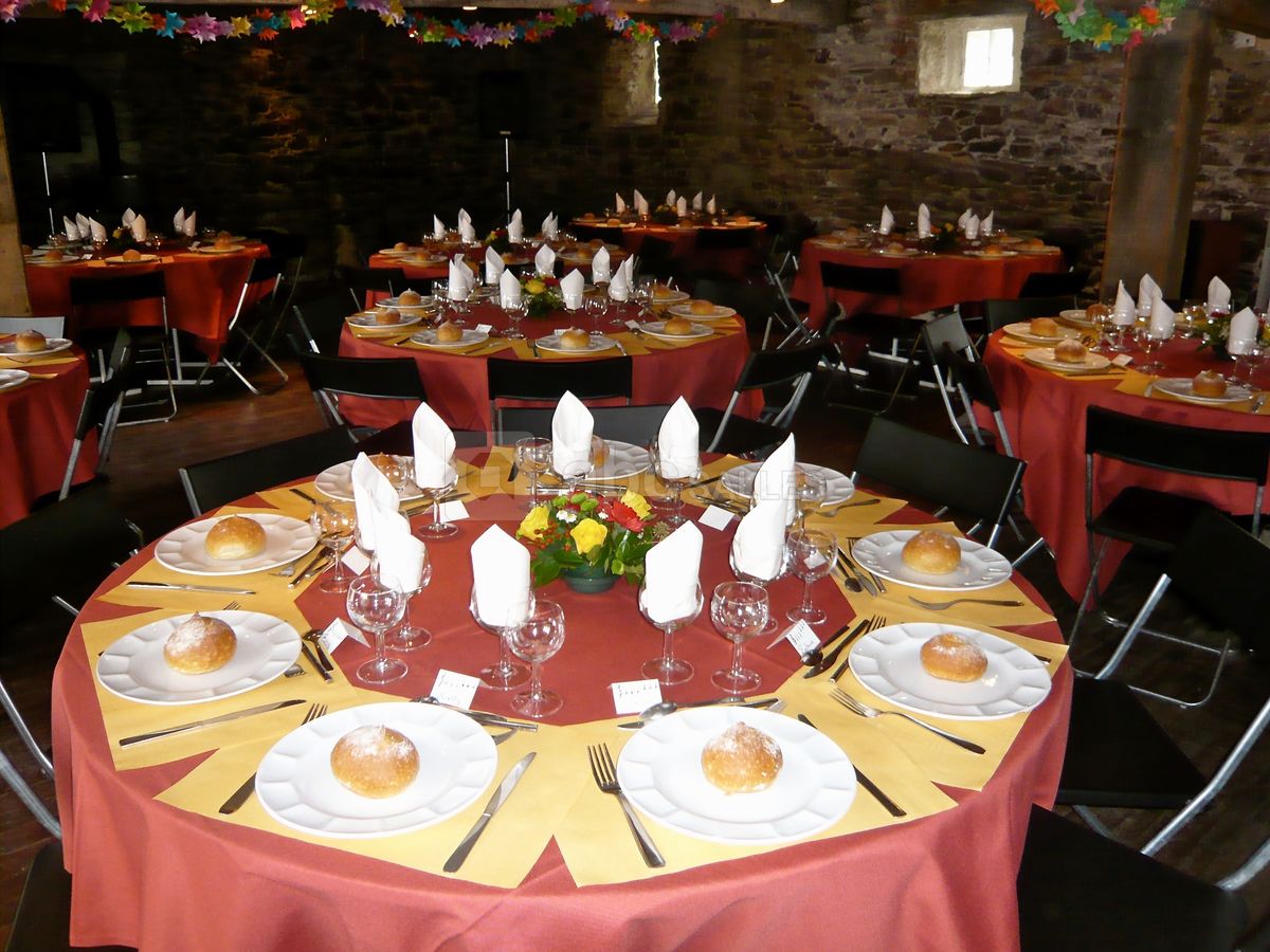 Son fournis les tables, chaises et couverts pour 80, une petite pièce attenante sert de vestiaire.. aussi disponibles dans le gîte un salon détente de 40 m² avec une deuxième cuisine équipée (four, Lave-vaiselle, réfrigérateur, grand évier...) sur place, hébergement pour 51 personnes (9 chambres et un dortoir) toujours loués avec la salle le week-end.