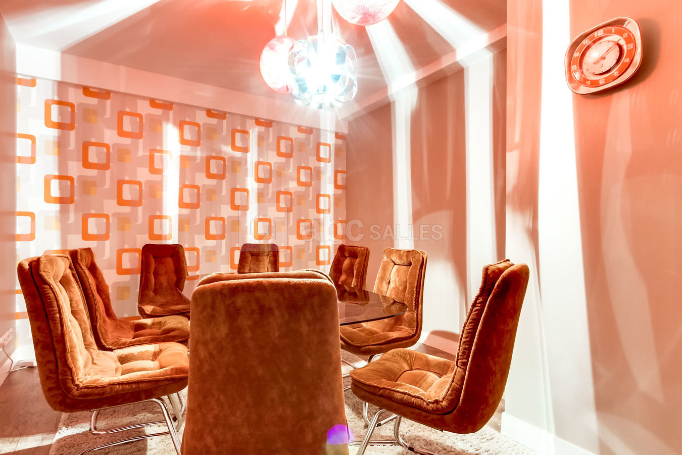 La salle Hector : cette salle offre une ambiance à l'âme 70's, grâce à ses tons chauds et orangés, elle est idéale pour des réunions nécessitant un aspect formel, mais décontracté.