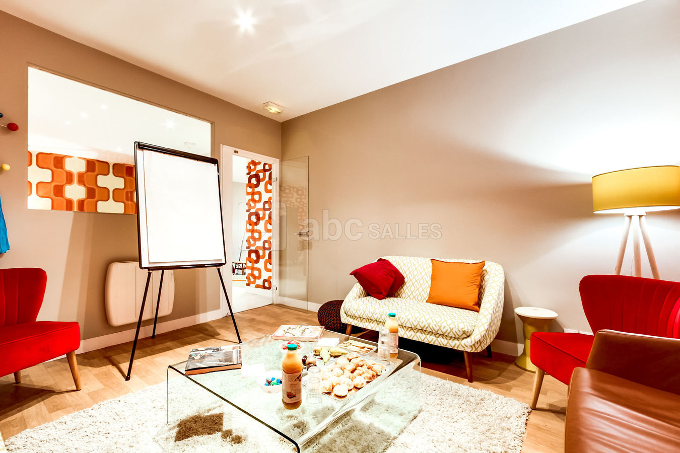 La salle Uptown : c'est un espace coloré et chaleureux. Cette salle est comme un petit loft où réunir votre équipe pour des team-building mémorables.