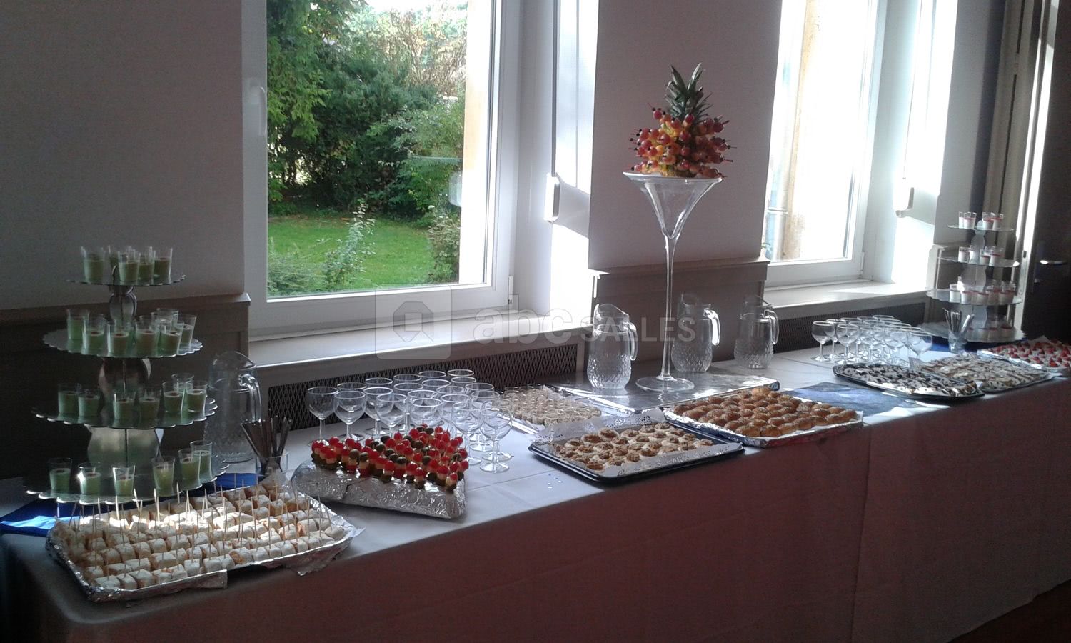 Vous aurez à disposition une cuisine de 12 m², équipée d'une armoire frigorifique, un piano 6 feux gaz, un four électrique, un chauffe plat et d'un réfrigérateur avec 2 bacs de congélation.
