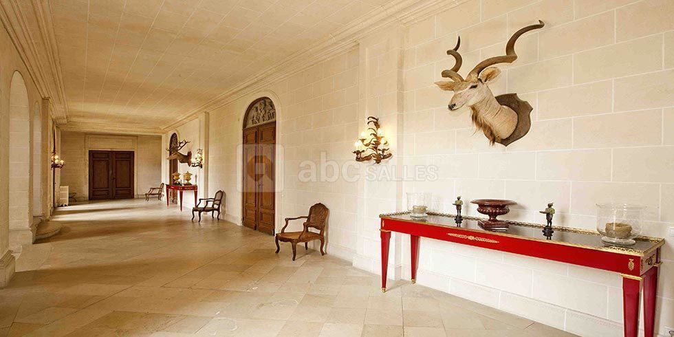 Toutes les pièces de réception s'ouvrent directement sur la galerie : une bibliothèque où l'on peut lire un journal au coin du feu, un petit et grand salon où l'art de parler autour d'un café ou d'un apéritif se pratique dans ce cadre du XVIIIe siècle. Ouverte également dans cette galerie, une salle à manger art déco classée Monuments et une chapelle pour méditer avant (ou après ?) la journée de travail.