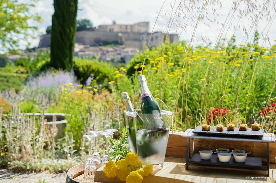 Un lieu d'exception pour vos évènements. Un cabanon le Pavillon des Amoureux lieu intime à la vue imprenable sur le Château de Grignan. Devis personnalisé sur simple demande.