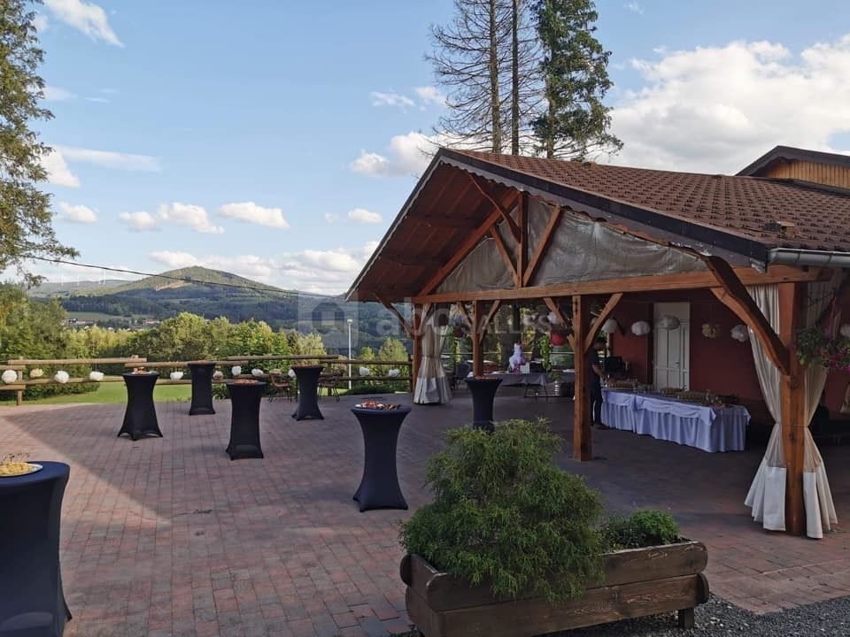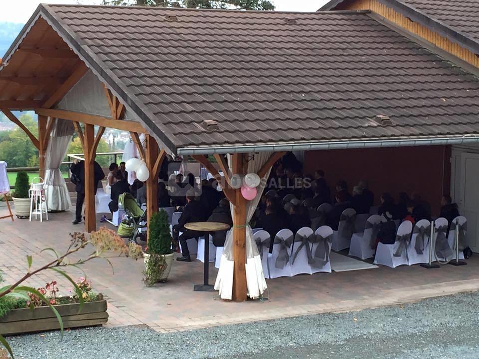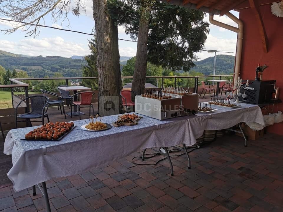 - Terrasse de 300 m² : La salle de réception est ouverte sur une large terrasse dont une partie est couverte, elle offre une vue panoramique sur l’ensemble de la vallée verdoyante de Senones, petite capitale de l'ancienne Principauté de Salm.