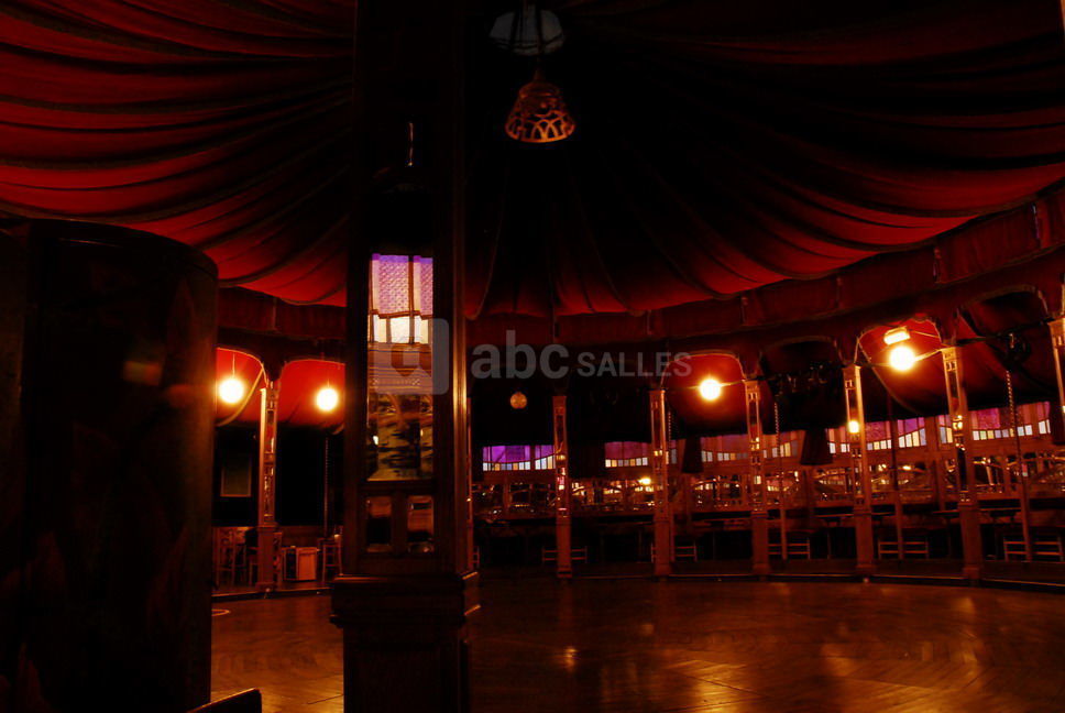 Objet étonnant sur le parvis très contemporain de la BNF, Le Dansoir est un Chapiteau de 470 m² de type « Art nouveau, Magic Mirror » D'une hauteur de 8m, il est composé d'une piste centrale entouré de 14 boxes fixes, le tout entièrement modulable en fonction de vos événements. L'espace est chauffé l'hiver, le sol est en plancher de chêne massif et la coupole est tendue de velum de velours rouge.