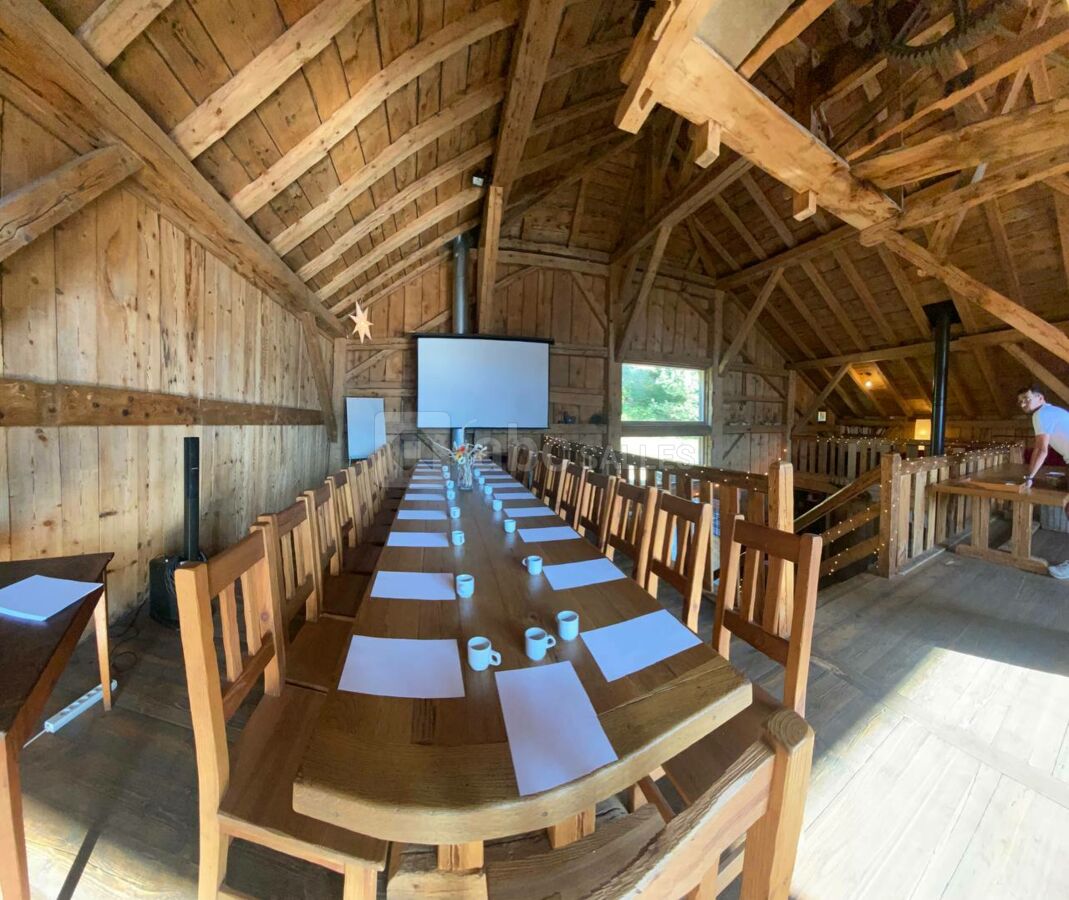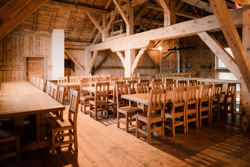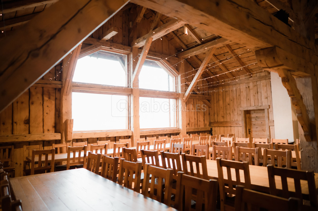 Claire et Théo rachètent le gîte en 2011 et effectue 2 ans de travaux pour rénover les 700 m² du chalet. Leur rêve était d'aménager la grange en laissant intact la magnifique charpente de presque 150 ans.