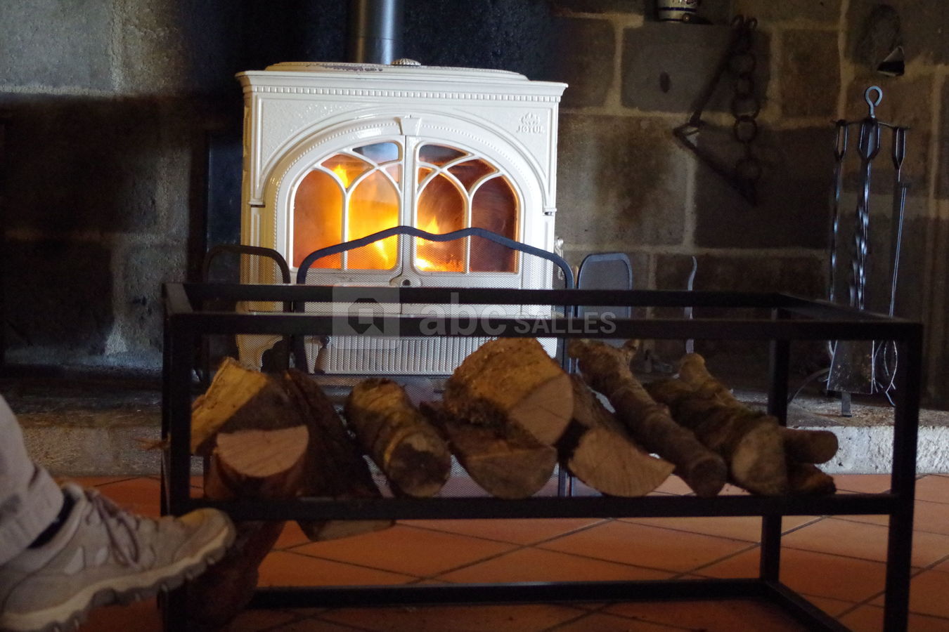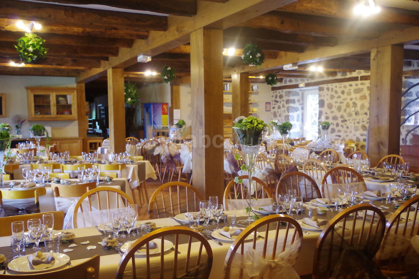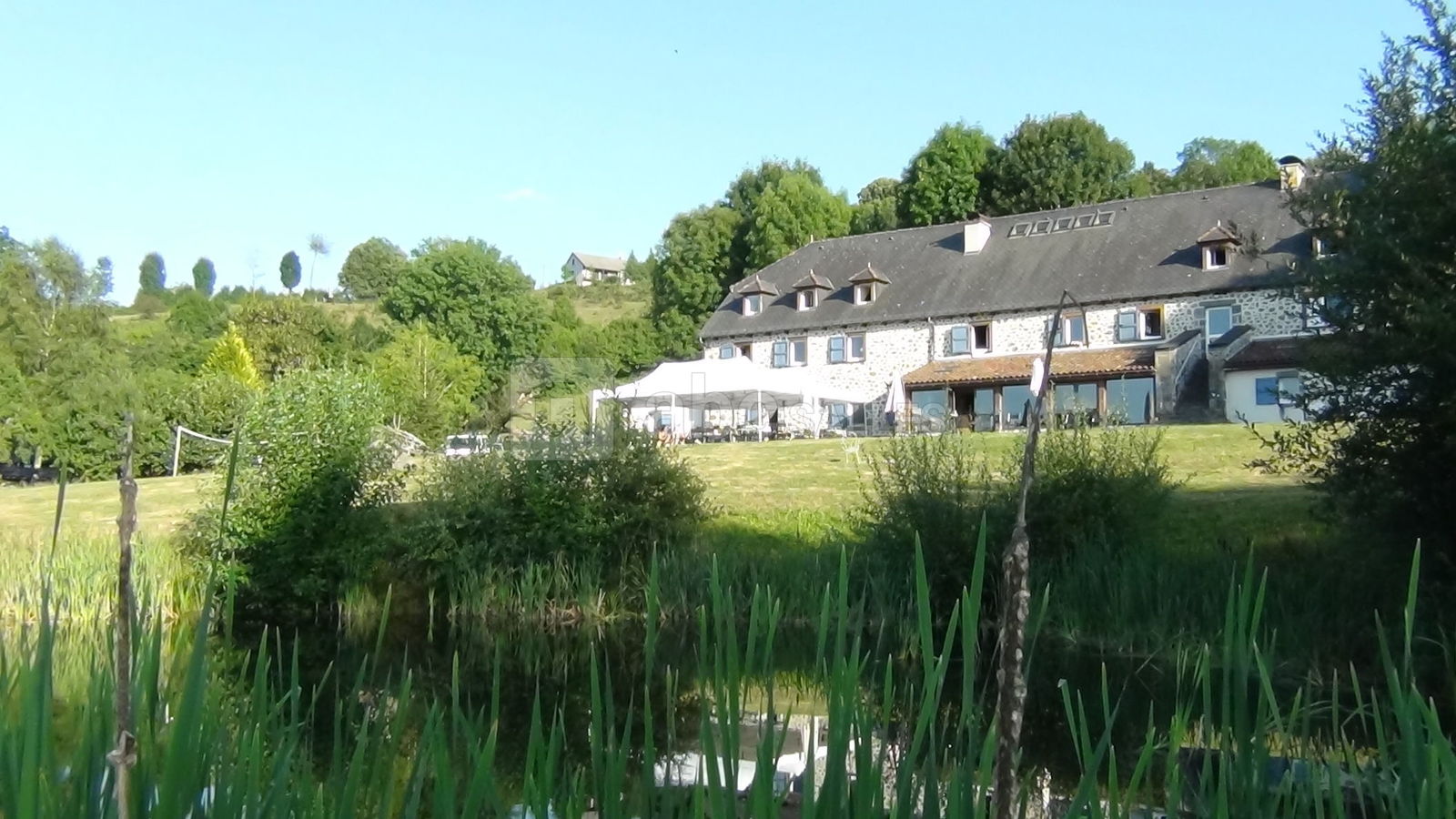 La première salle de 110 m² est fourni avec un grand cantou, un poêle à bois en feu continu, une Véranda, un bar et un forum avec vue sur la vallée.