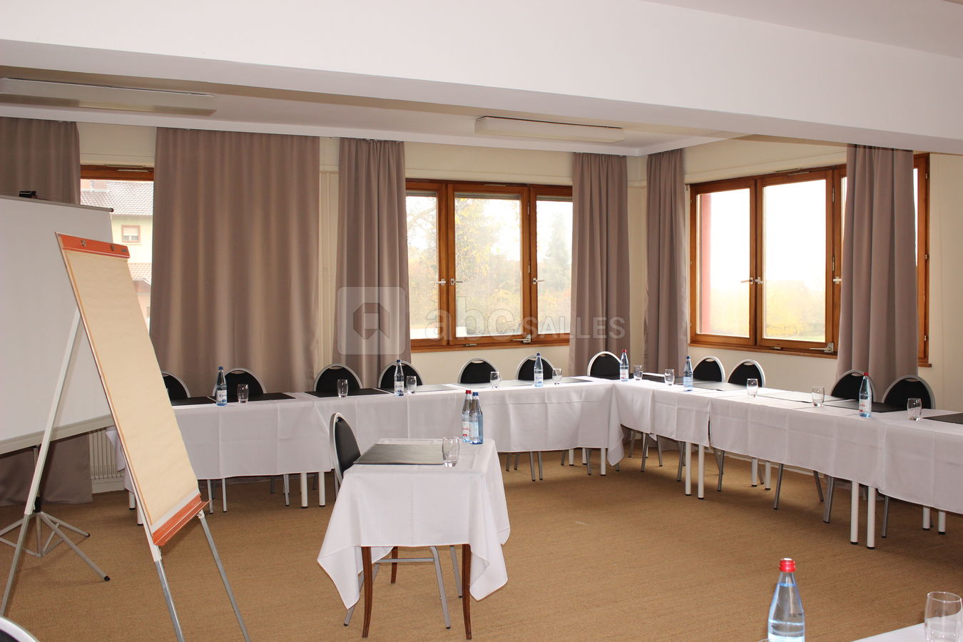 Une salle de réunion fonctionnelle et modulable en fonction de vos besoins. Nous pouvons accueillir jusqu'à 48 personnes pour tous vos événements professionnels et privés.