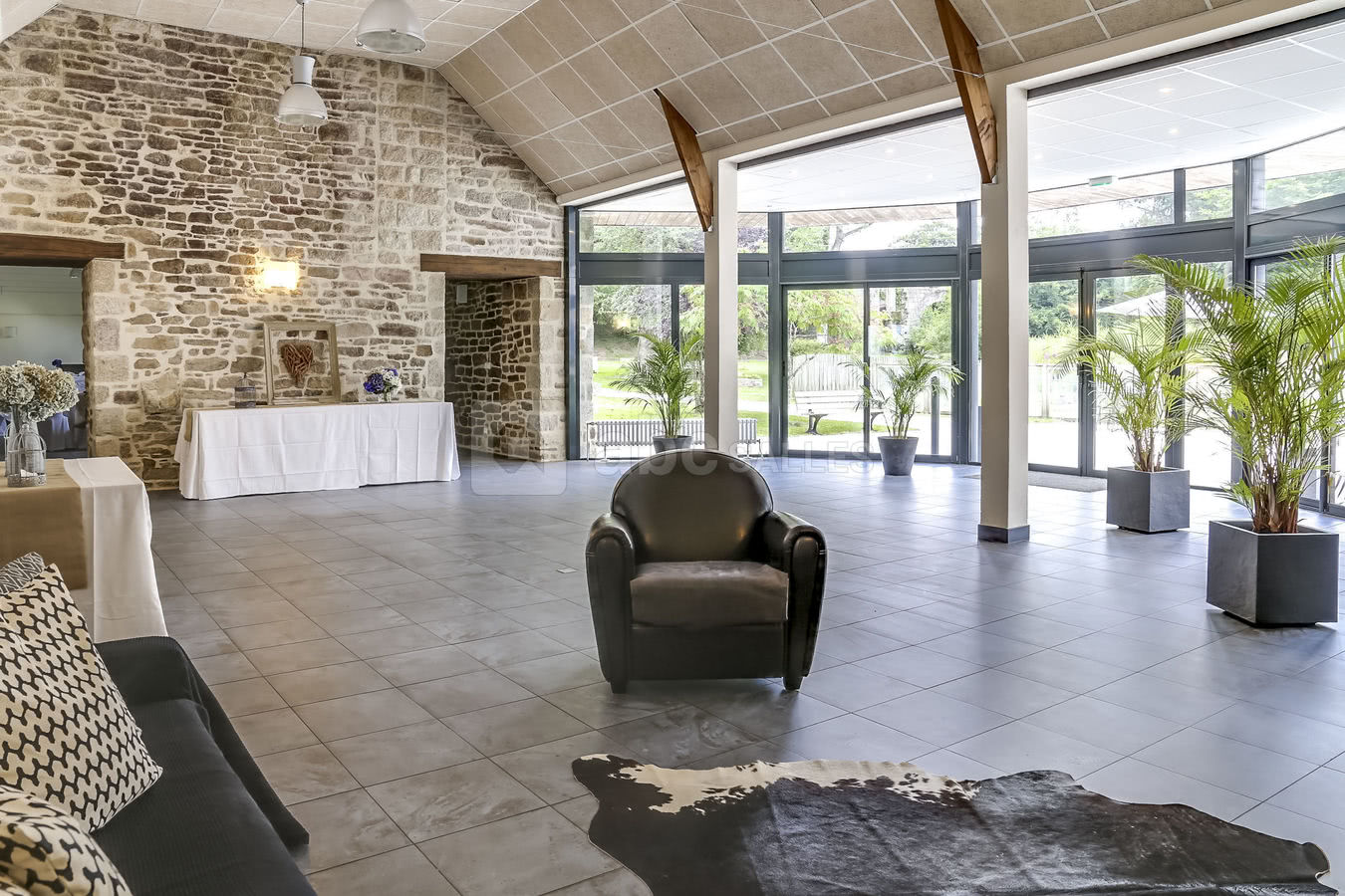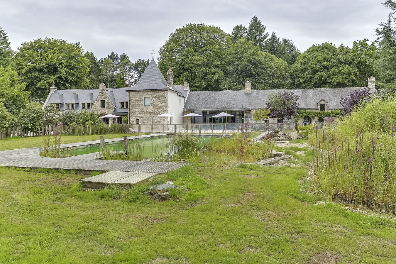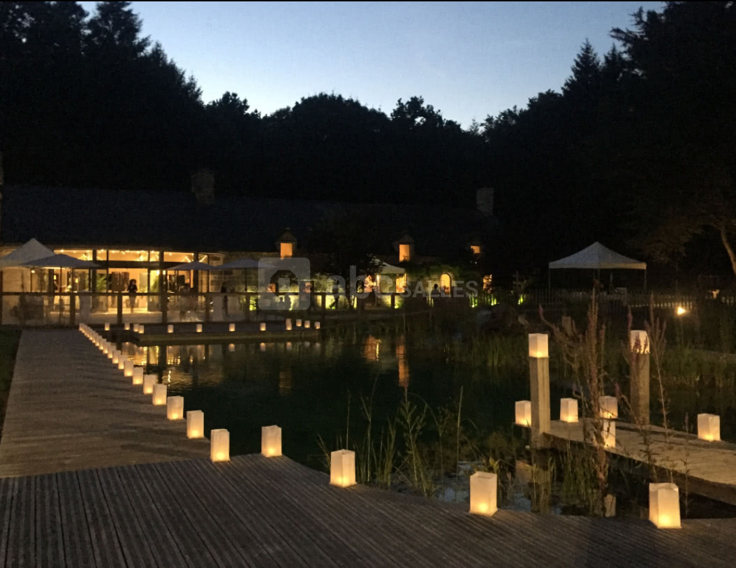 - le manoir situé devant la piscine d'eau naturelle, avec sa salle de réception, en pierre et murs en chanvre pouvant accueillir 140 convives assis