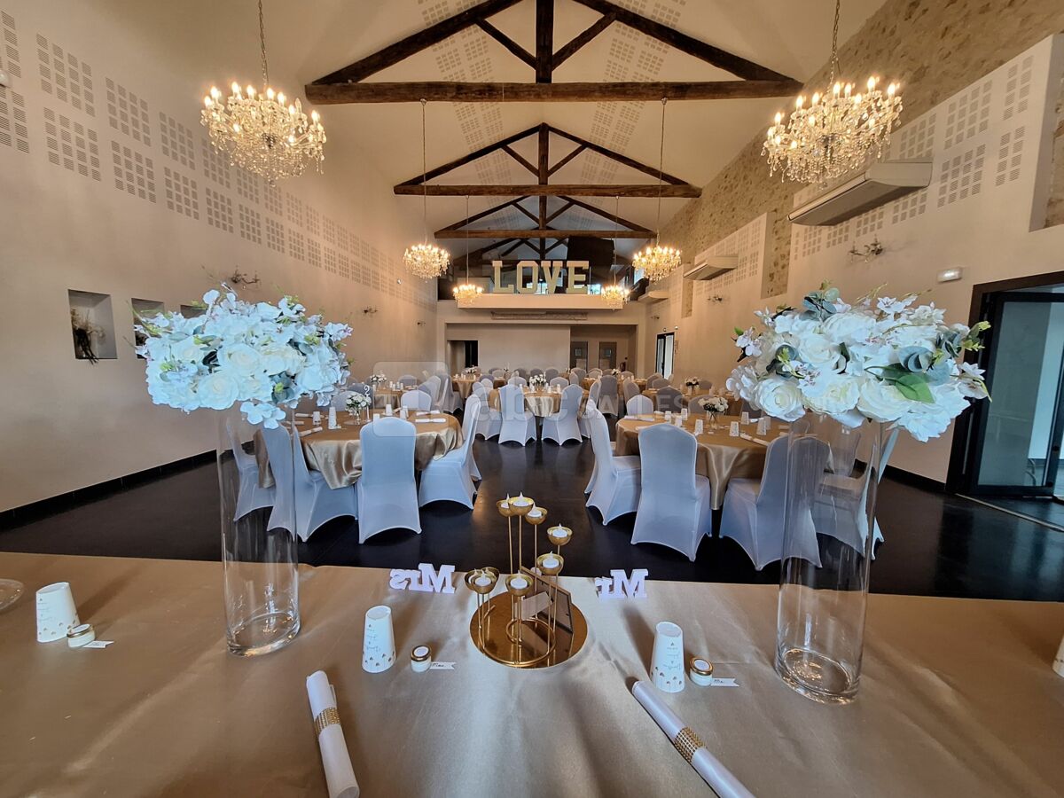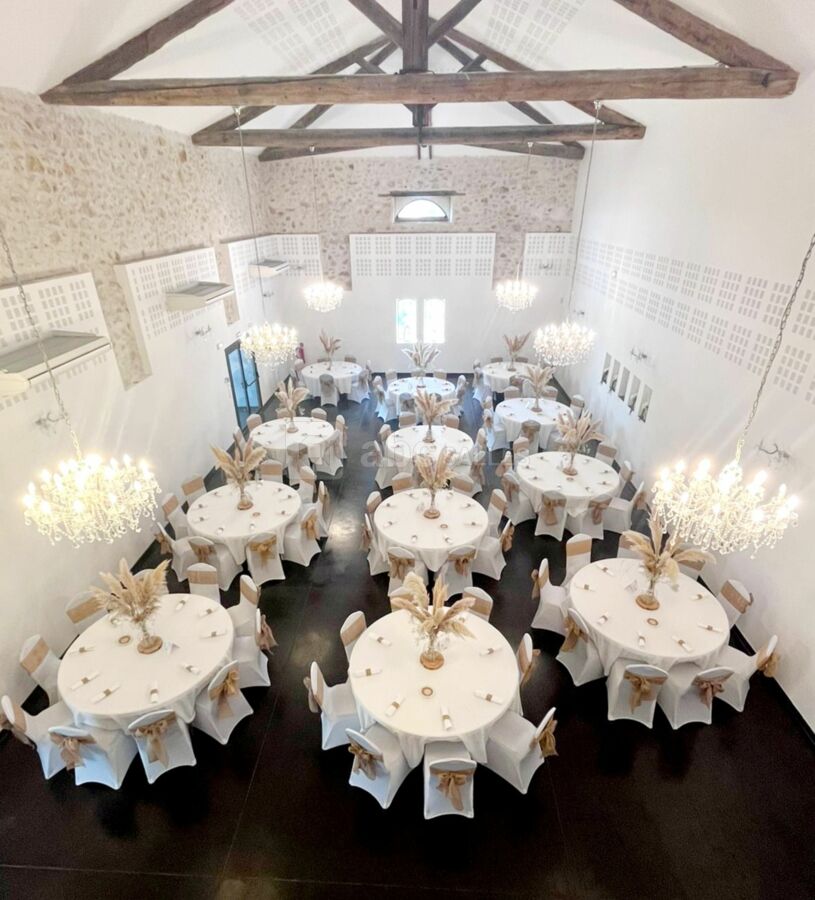 Le Mas de Laux vous accueille pour vos événements privés et professionnels en vous proposant une salle de mariage de 220 m², prévue pour accueillir jusqu'à 150 personnes assisses.