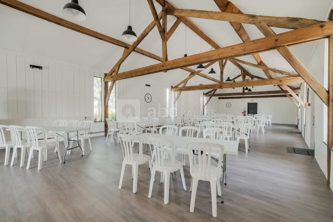 Nous vous proposons un ancien séchoir à tabac qui fait office de grande salle. Vous disposerez de 160 m² pour accueillir jusqu’à 120 personnes pour vos fêtes et réceptions. La salle dispose d’un bar et d’un accès dédié pour un traiteur. Un grand parking extérieur est également à disposition.