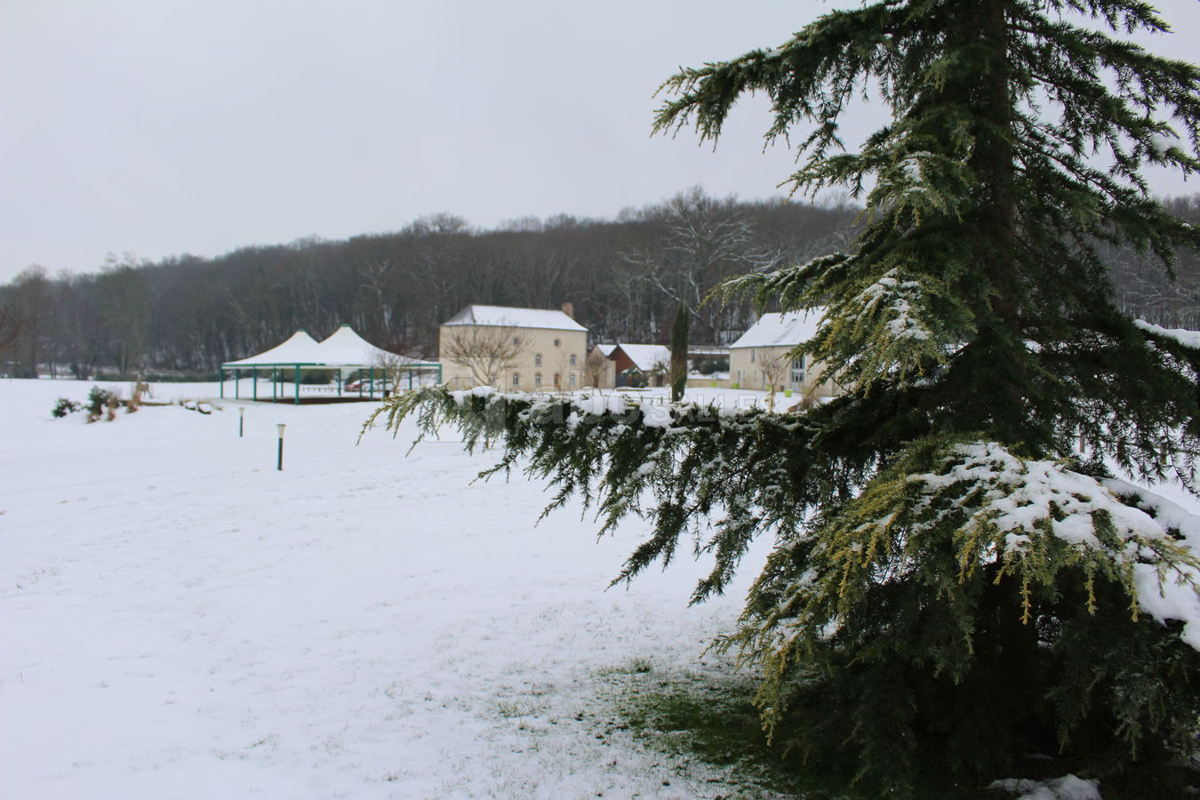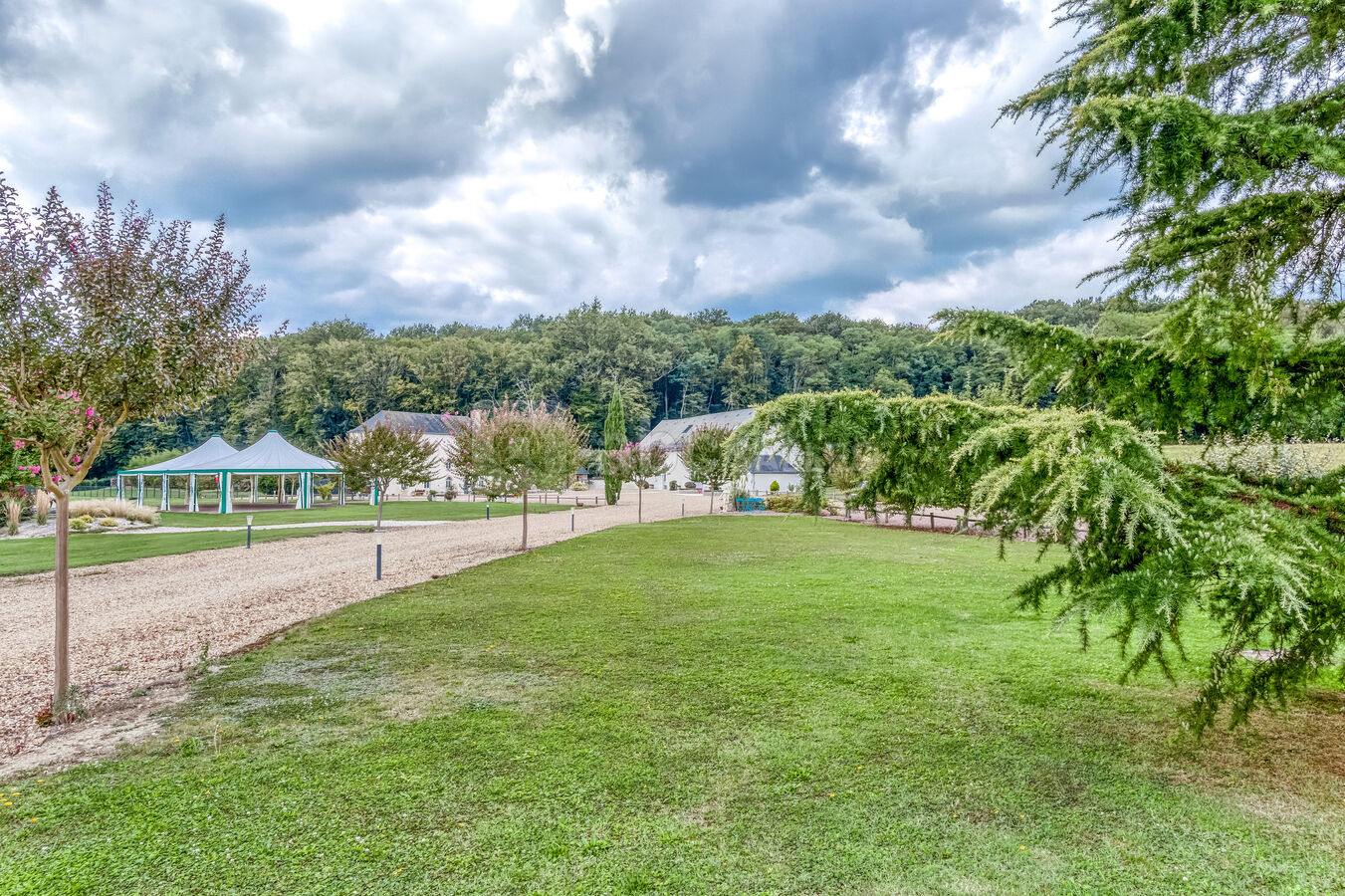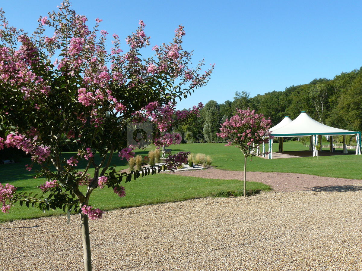 Un espace vert de 4 hectares calme et verdoyant, avec un barnum-chapiteau de 200 m² endroit privilégié pour vos apéritifs et vins d'honneur.