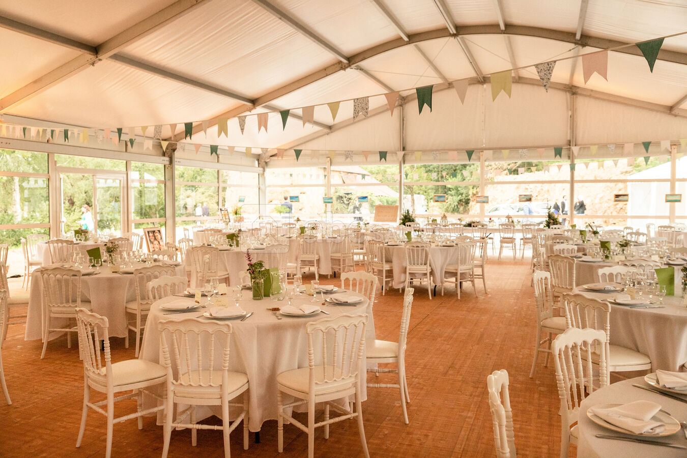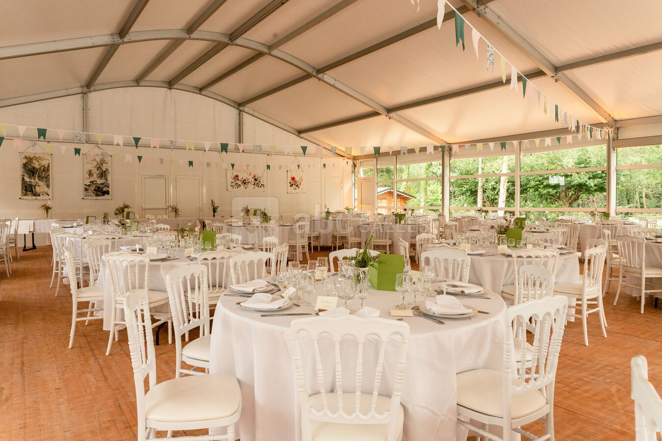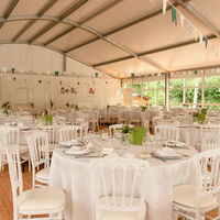 Le lieu ne possède pas de "salle" de réception, nous louons le parc avec un chapiteau (minimum 120 personnes, maximum 350 personnes), couplé d'un espace traiteur.