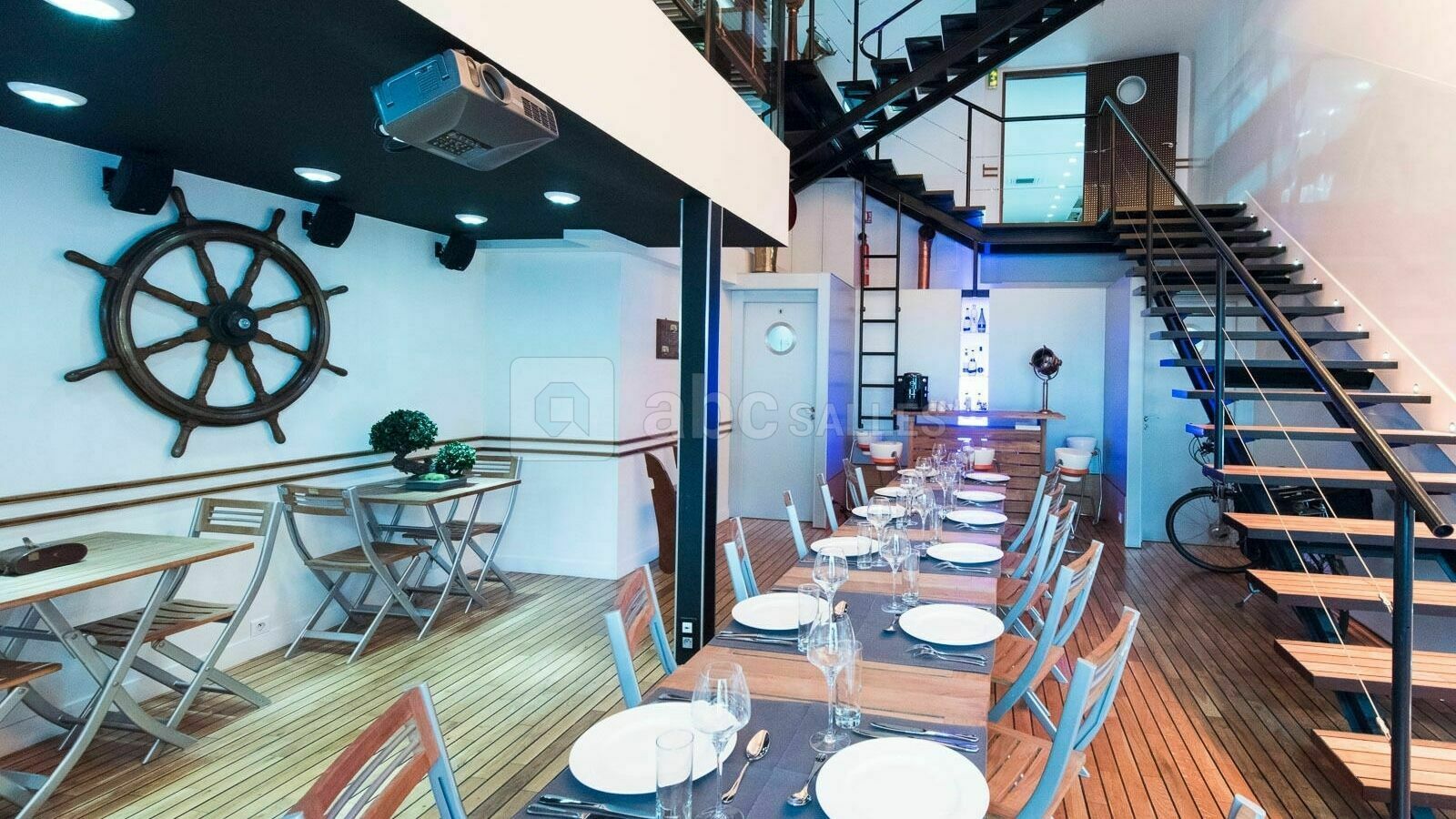 Si l’aménagement et la décoration de ce lieu rappellent à s’y méprendre ceux d’un bateau ou d’une péniche, nul besoin d’avoir le pied marin pour en fouler le pont ! Répartie sur 120 m² et trois niveaux, l'Annexe est un lieu solidement ancré au cœur de Boulogne-Billancourt, à deux pas de la Porte de Saint-Cloud au sud-ouest de Paris.