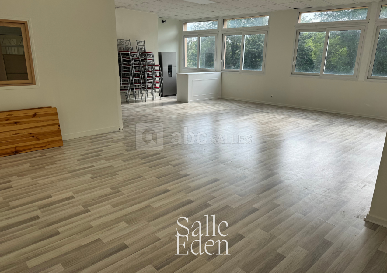 La première, la salle EDEN, est un espace convivial et lumineux, parfait pour des événements intimiste. Avec une capacité de 1 à 50 personnes assises et de 1 à 70 personnes debout, cette salle de 70 m² offre une ambiance chaleureuse . Vous y trouverez également un espace dédié pour chauffer et réfrigérer vos préparations, afin de garantir le bon déroulement de votre réception.