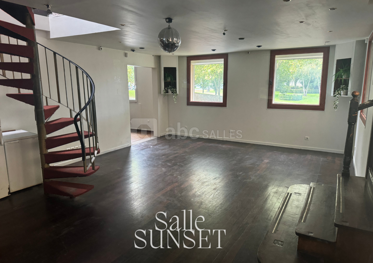 La seconde, la salle sunset, est un espace spacieux et moderne. Avec une capacité de 1 à 120 personnes assises et de 1 à 180 personnes debout, cette salle de 120 m² se distingue par ses équipements et ses atouts supplémentaires : une pièce attenante équipée d’un bar, un espace cosy, une terrasse pour profiter de l’extérieur, et un office traiteur idéal pour vos préparations culinaires. Ce lieu allie parfaitement fonctionnalité et convivialité pour impressionner vos convives.