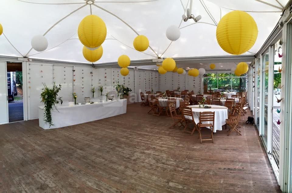 Pour votre réception vous disposerez d’une grande salle de 130 m², de plus de 300 m² de terrasses et de son fabuleux jardin. Un parking est également mis à votre disposition sur place.