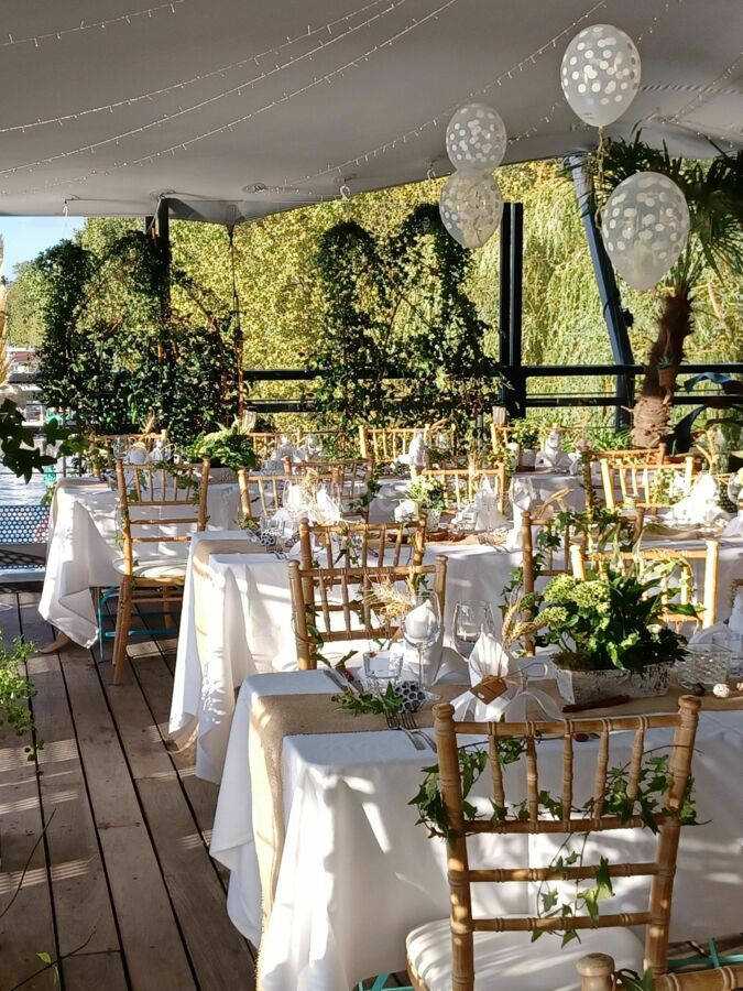 Cadre et ambiance Lieu unique et atypique : Une péniche amarrée sur la Seine, offrant un cadre original et dépaysant pour vos événements. Vue imprenable : Rooftop avec panorama exceptionnel sur la Seine, idéal pour des cocktails ou des soirées d'entreprise. Ambiance chaleureuse et conviviale : atmosphère relaxante.