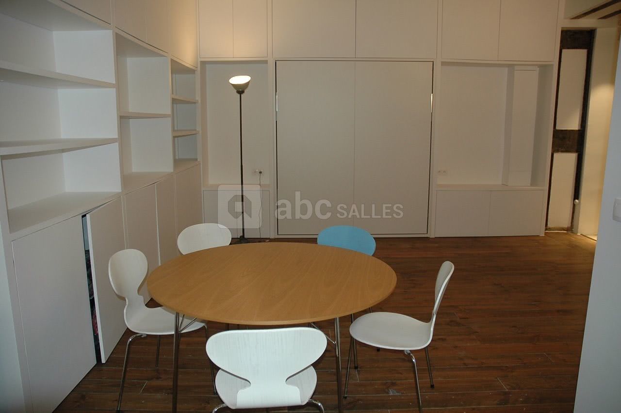 Ses cimaises permettent l’accrochage d’une trentaine de tableaux environ. Il est doté de tout le confort : cuisine équipée (lave-vaisselles, congélateur, frigidaire, micro-onde, machine à café et couverts), salle d’eau toilettes, tables et chaises de Eames et nombreux rangements.