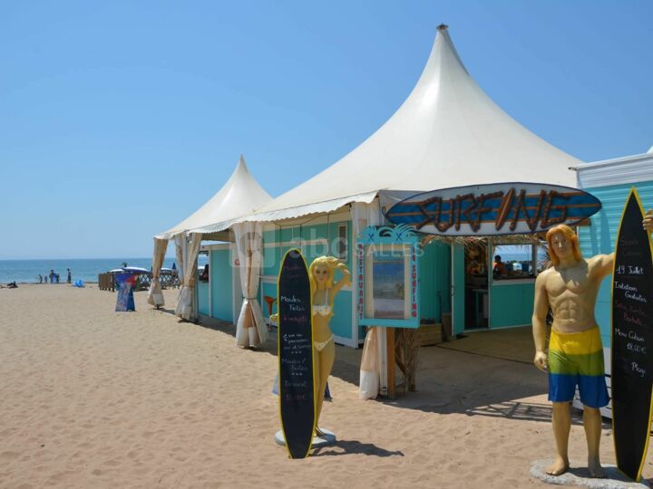 Restaurant composé de chapiteaux ouvert sur la plage avec vue sur la Méditerranée, toutes les tables on vue sur la mer. Spacieux et modulable à souhait. Sol en bois, décoration adaptée à l'environnement "Mer-Soleil". Le bar qui propose un large choix de boissons et cocktails est ouvert sur le restaurant. La cuisine est en retrait mais visible de la salle. Les produits proposés correspondent à une cuisine méditerranéenne à base de poissons et viandes. Une plage privée fait aussi partie de l'établissement.