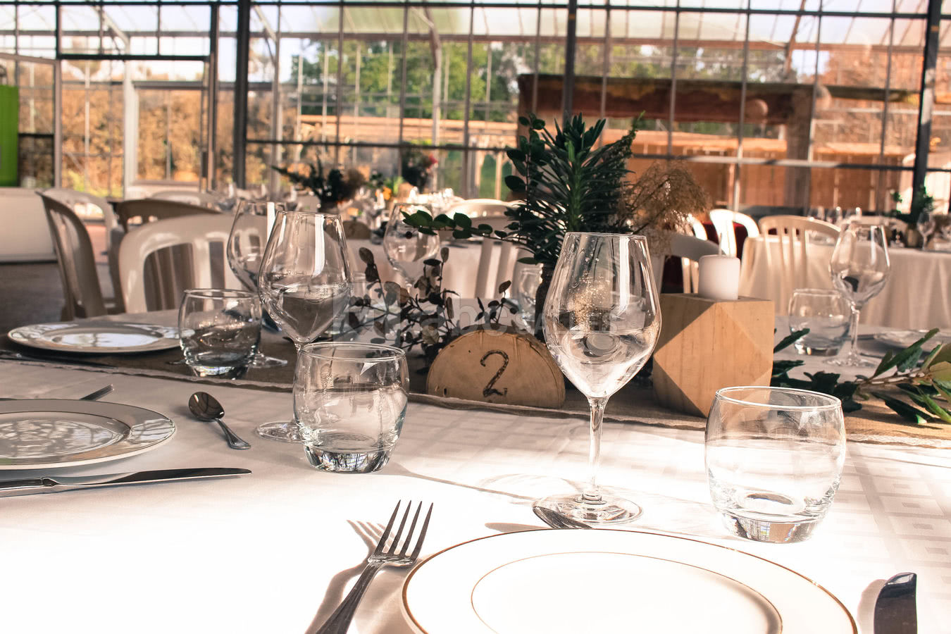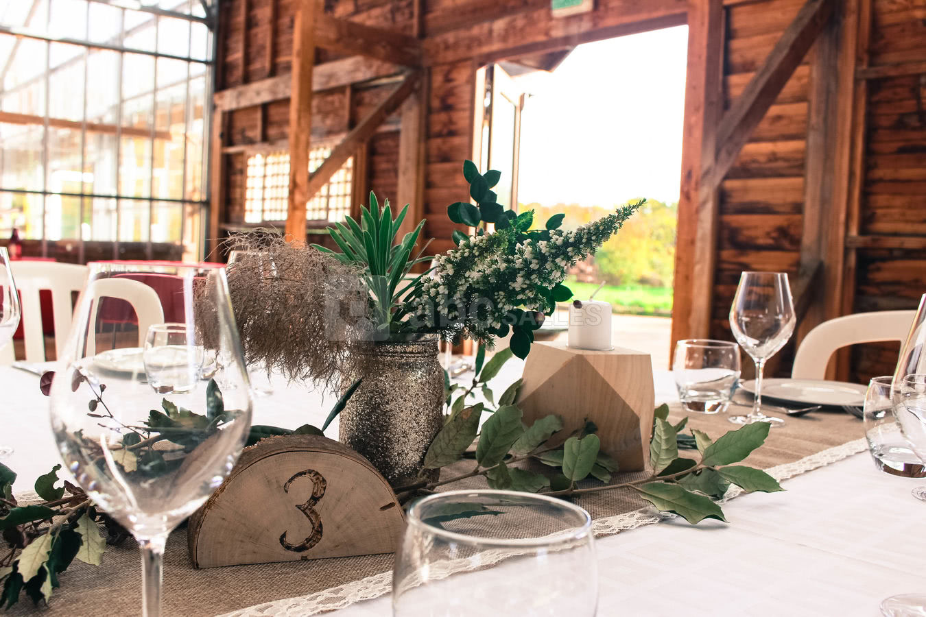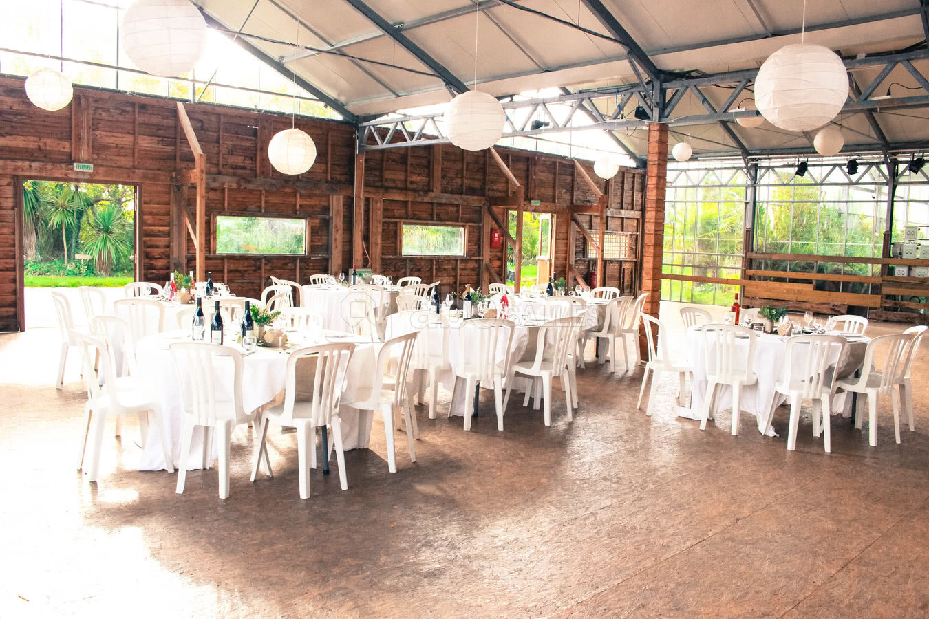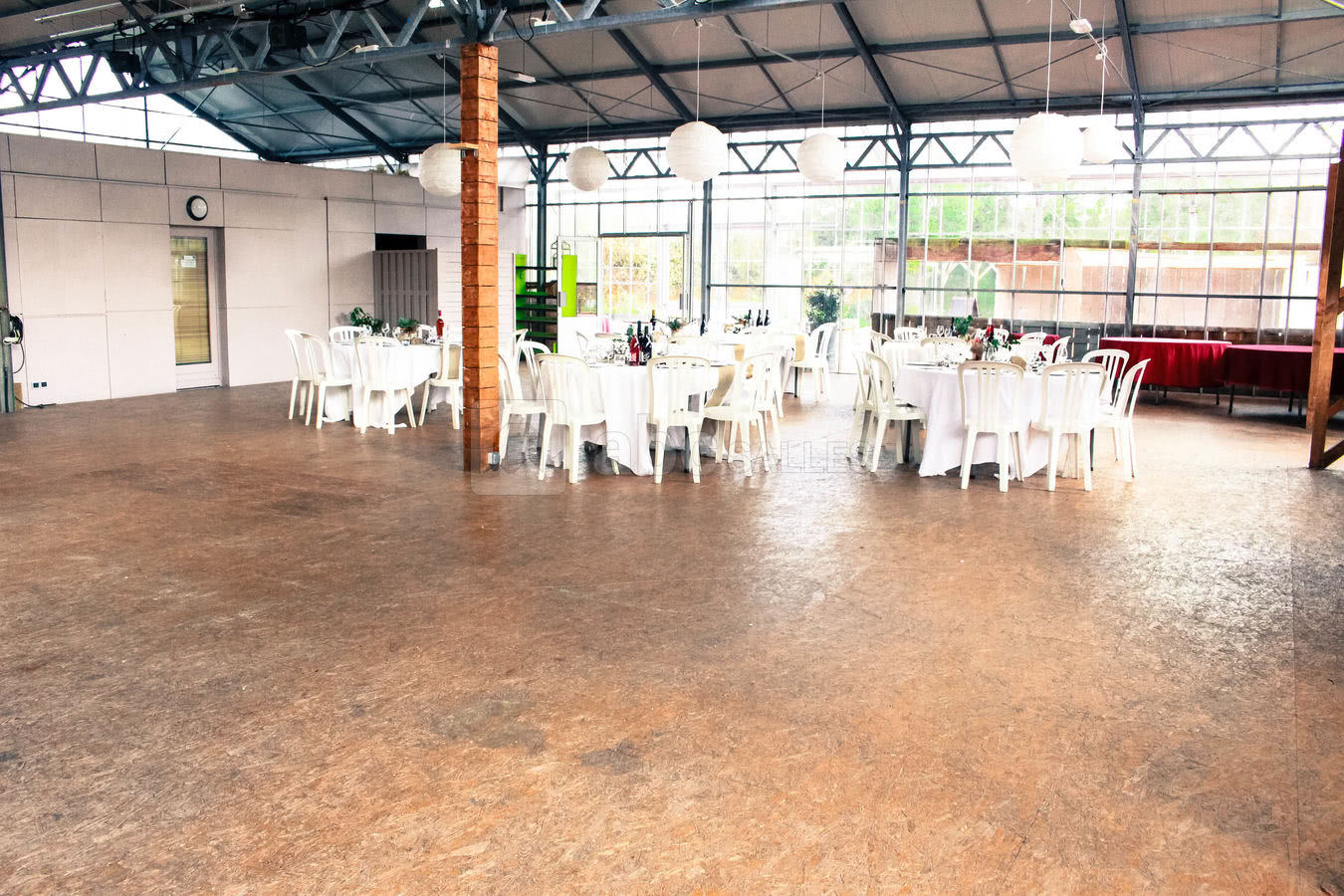 Au total, 3 serres sont mises à votre disposition pour votre réception. Au cœur des serres, vous trouverez la salle de réception qui accueille jusqu’à 250 personnes assises. Une serre est mise à la disposition du traiteur dont le choix est libre, et un espace enfant pour que eux aussi puissent profiter de l’événement.