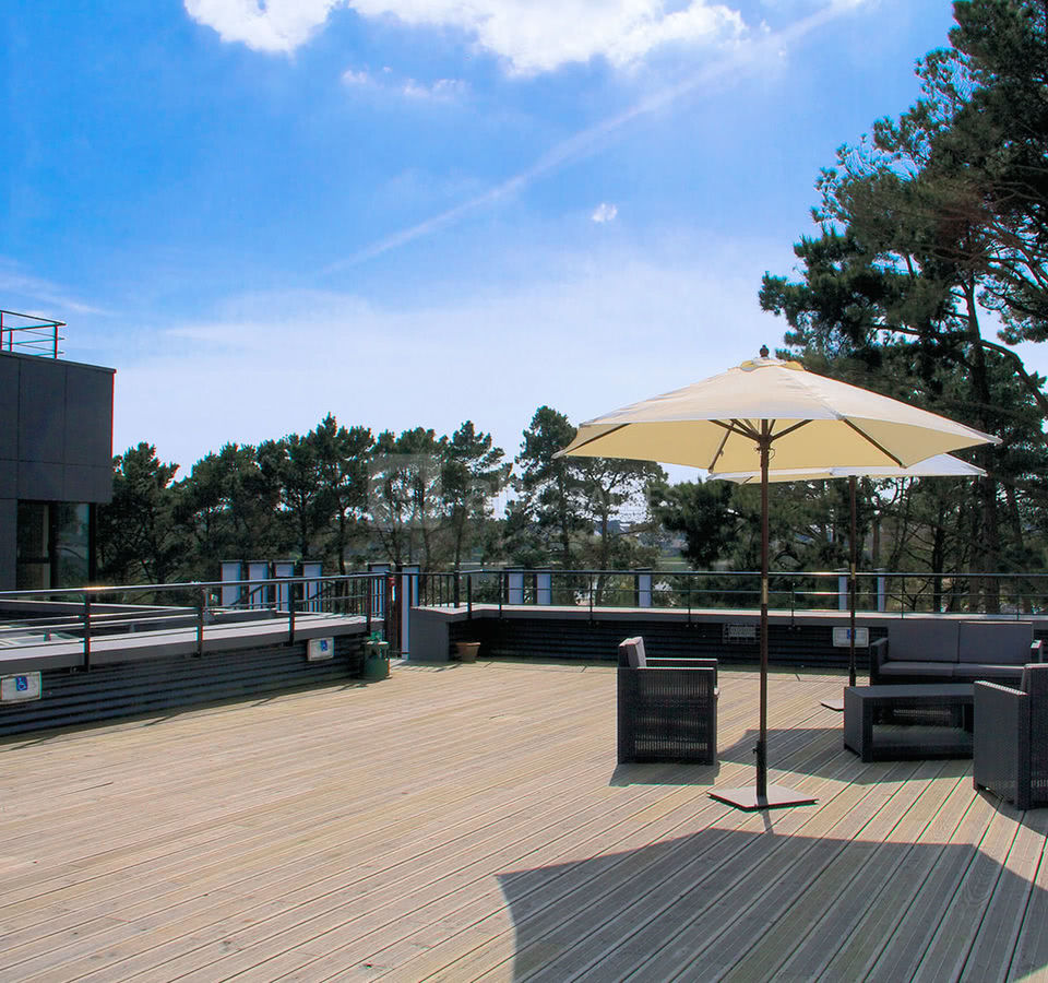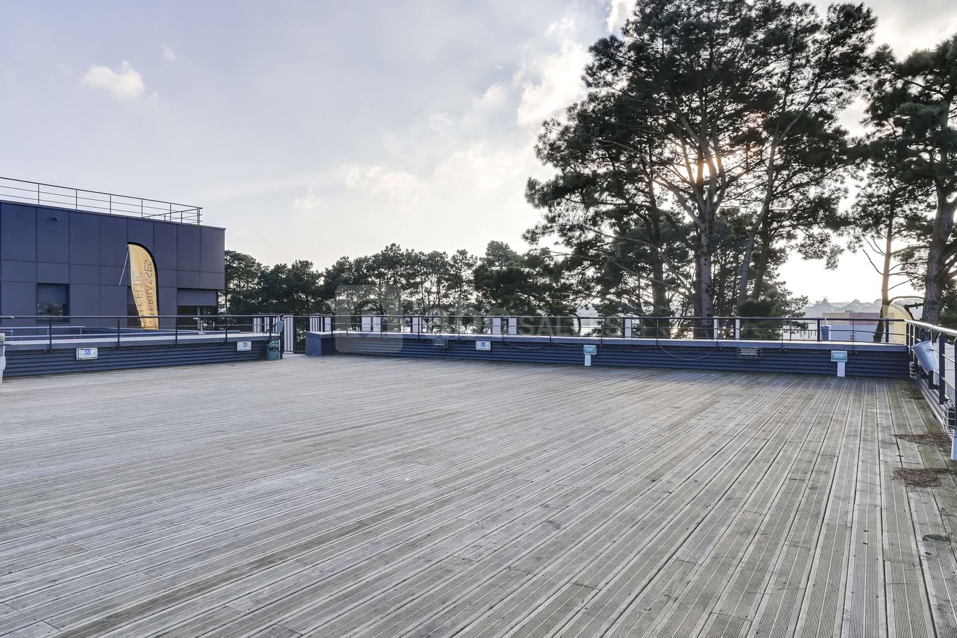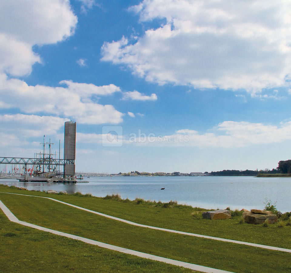 Vue sur la rade de Lorient et terrasse de plus de 130 m² pouvant être couverte d'un chapiteau.
