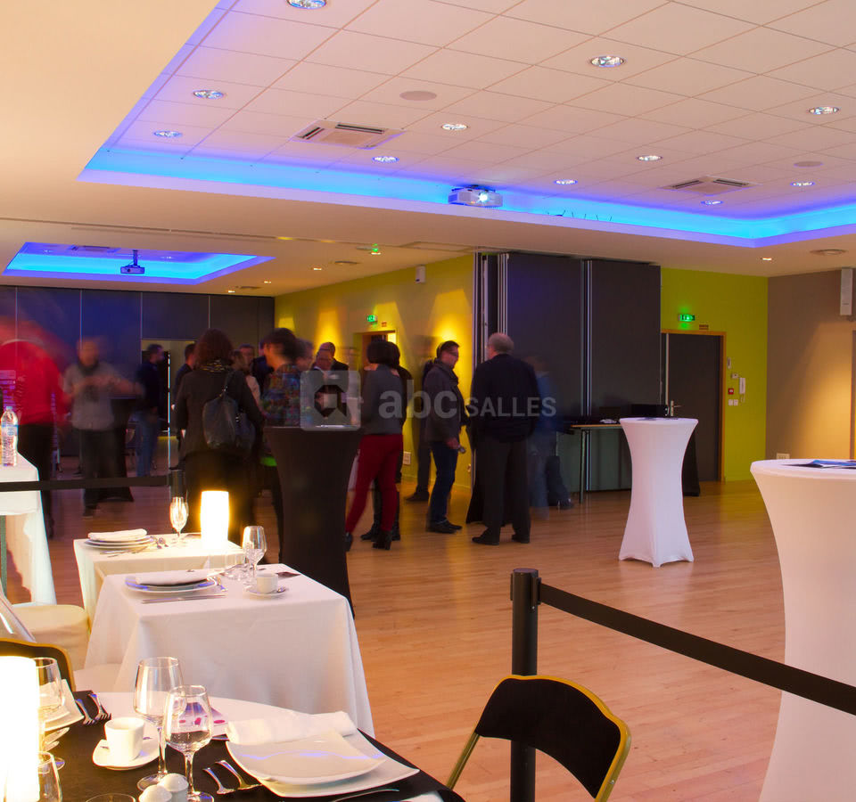 Pouvant accueillir jusqu'à 260 personnes assises et 400 debout, cette grande salle modulable en 3 espaces distincts s'adapte à la dimension de votre manifestation.