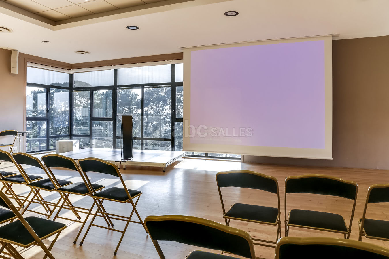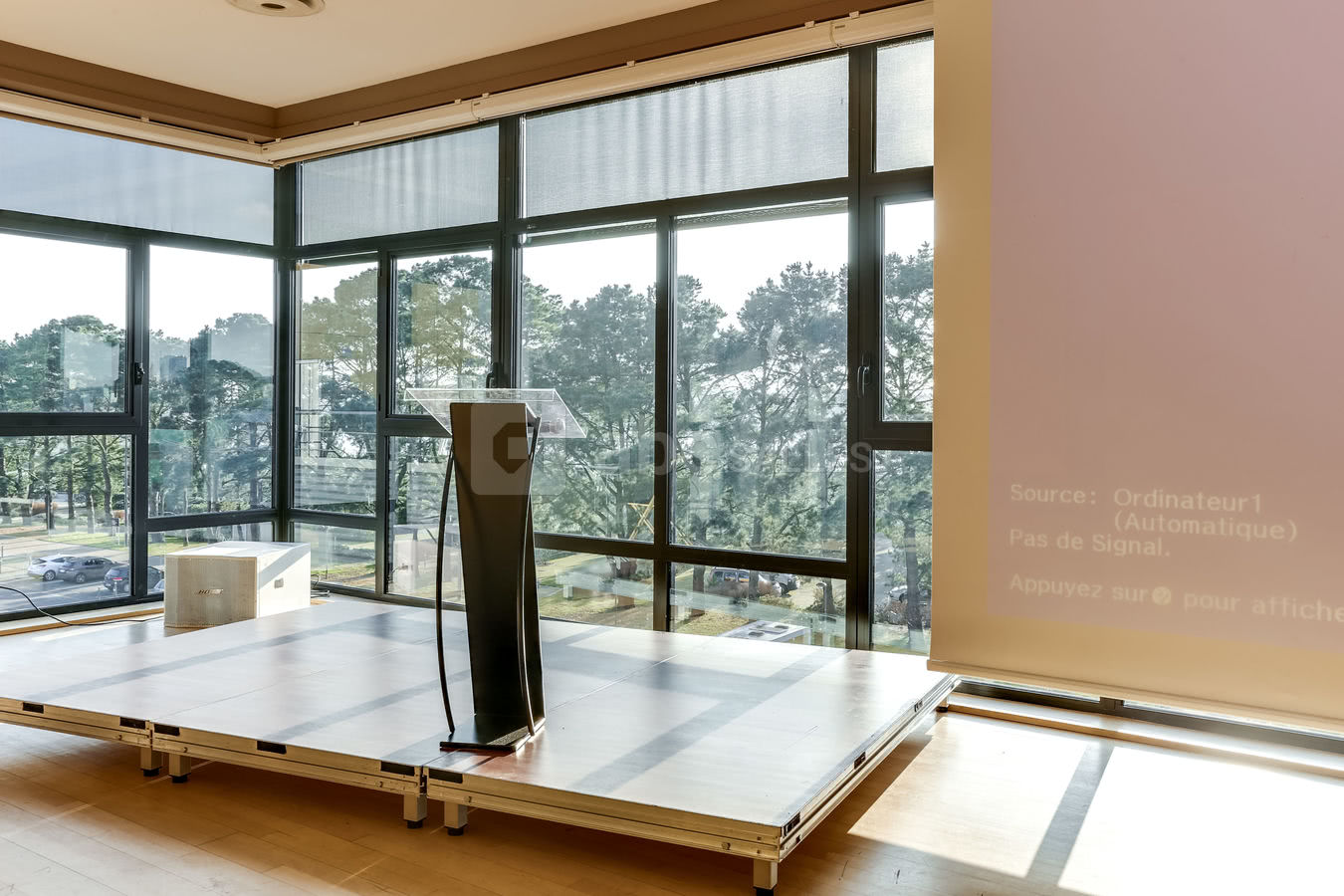 Nos salles disposent toutes d'équipement audiovisuel haut de gamme (enceintes de qualité (bose), grands écrans de vidéoprojections, et écrans TV relais), micros HF et filaires, accès wifi gratuit. Finitions de haute qualité (éclairage d’ambiance à LED de couleur, son et lumière sur la terrasse…) Accès à l'espace technique par l’arrière et monte-charge pour les traiteurs depuis le RDC.
