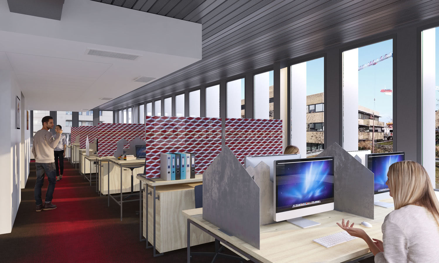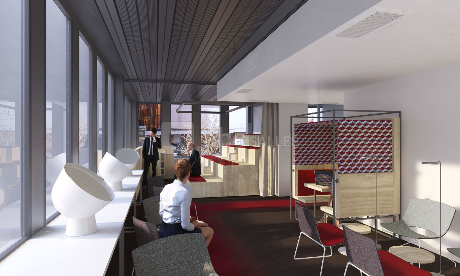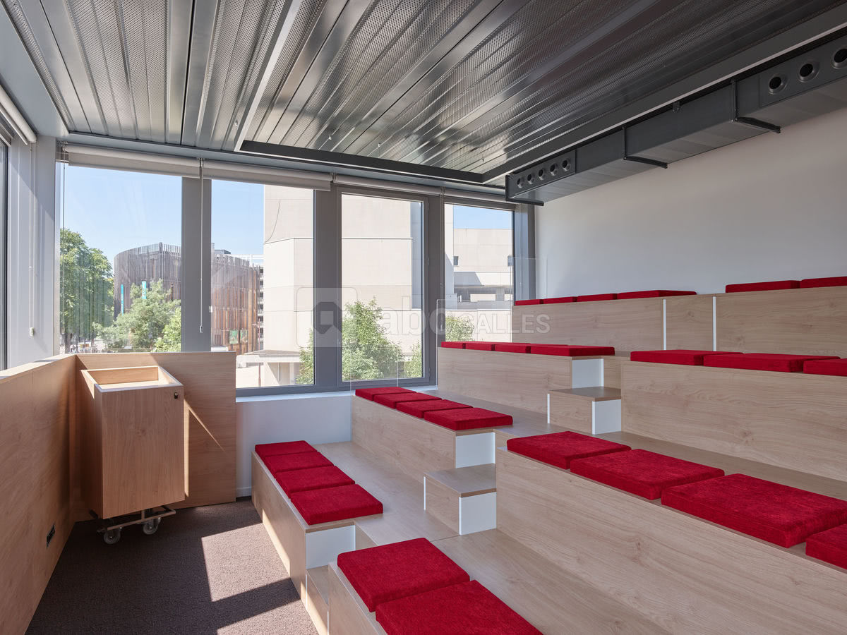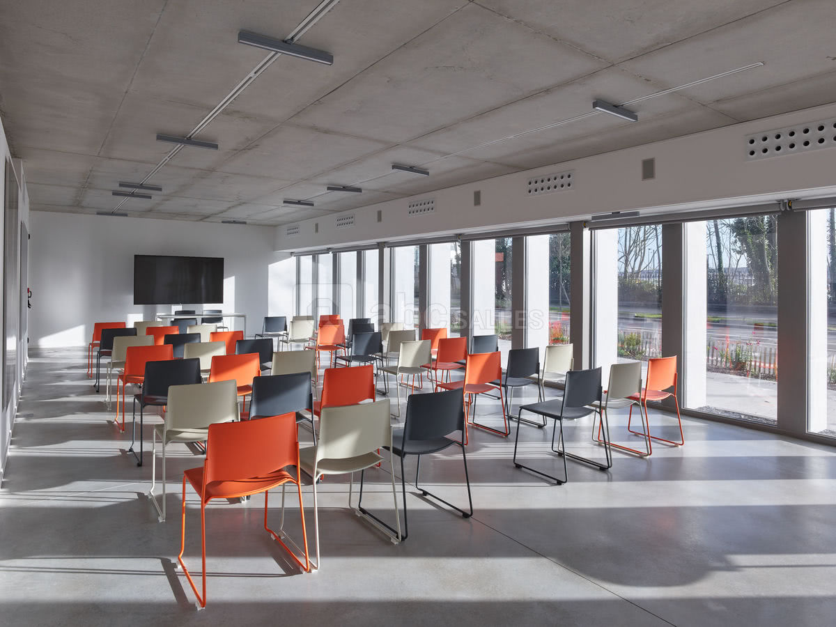 - Au rez-de-chaussée, un grand espace de réunion et de réception de 100 m²,équipé d’un espace traiteur, accueille vos conférences, séminaires et événements. Son accès en pied d’immeuble offre la possibilité de privatiser le parvis couvert du bâtiment.