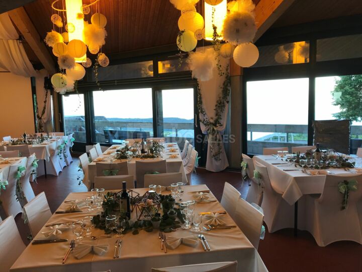 Une grande salle d’une capacité d’accueil de 170 personnes pour manger divisible en deux parties(1×130 m² et 1×75 m²)