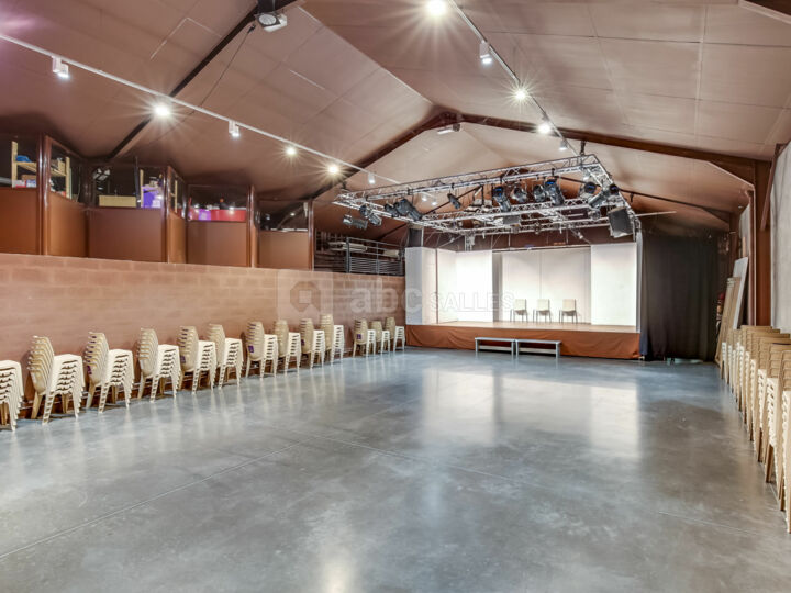 Nous mettons à votre disposition une salle avec une scène surélevée et un espace de 150 m² modulable selon vos envies.