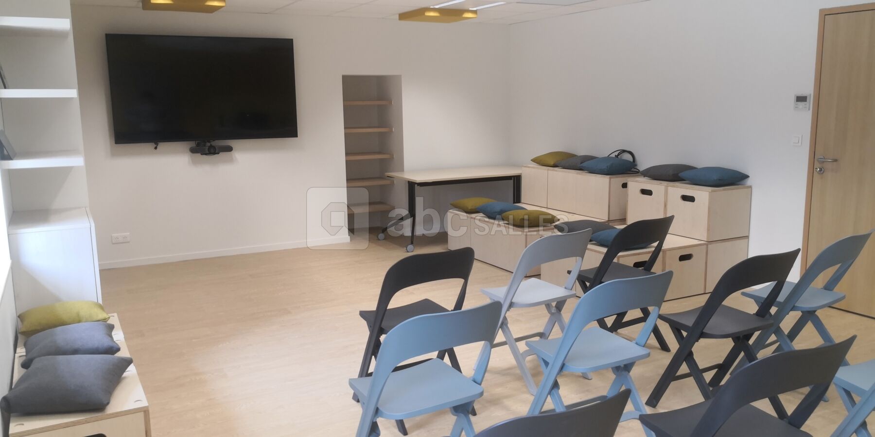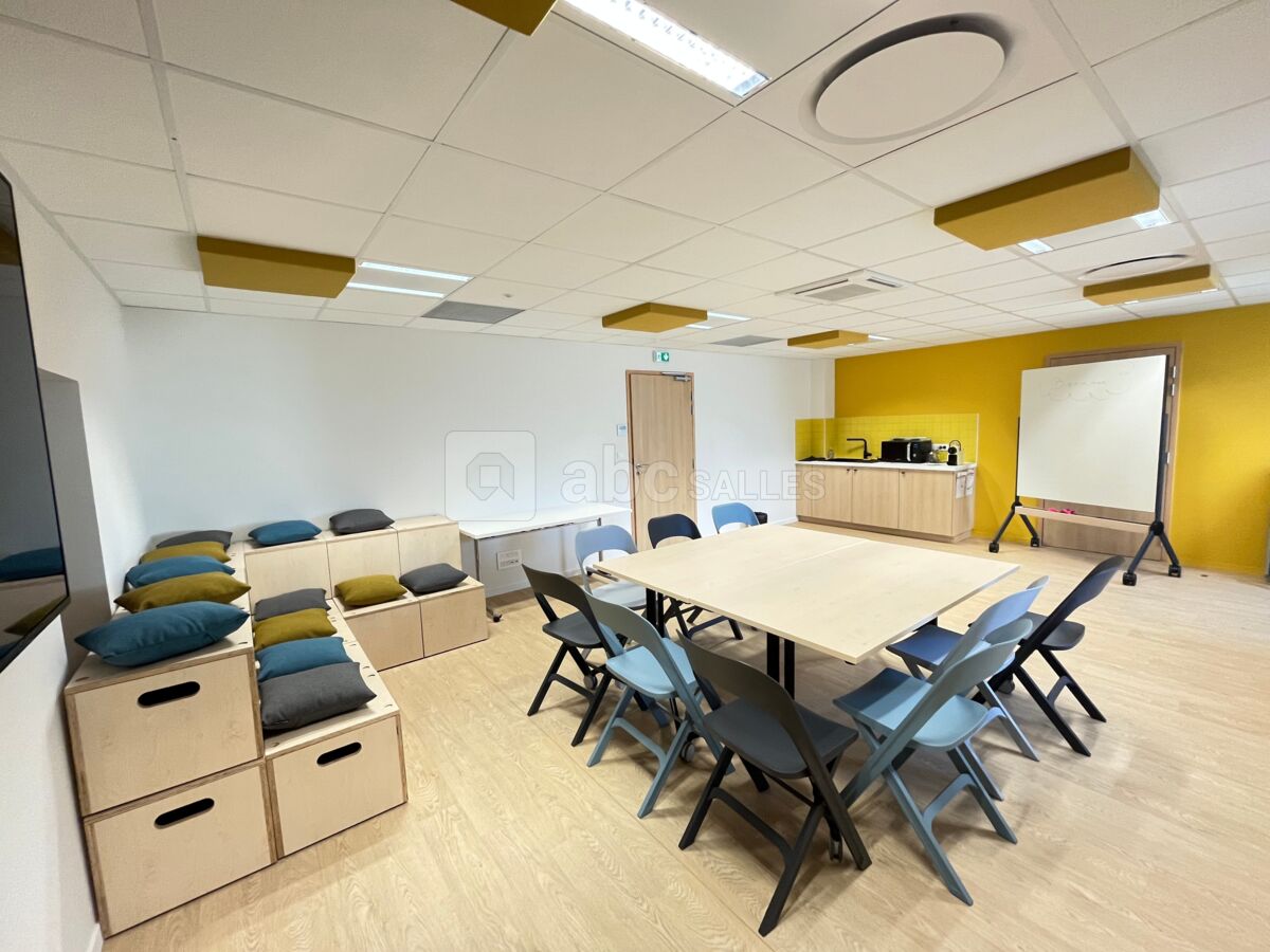 Notre salle de formation de 37 m² répond à tous vos besoins pour des sessions efficaces et réussies. Personnalisez la disposition de l’espace en fonction de vos préférences. Que vous ayez besoin d’une configuration en salle de classe, en U ou en théâtre, nous nous adaptons à vos besoins spécifiques. La salle peut accueillir jusqu’à 20 personnes.