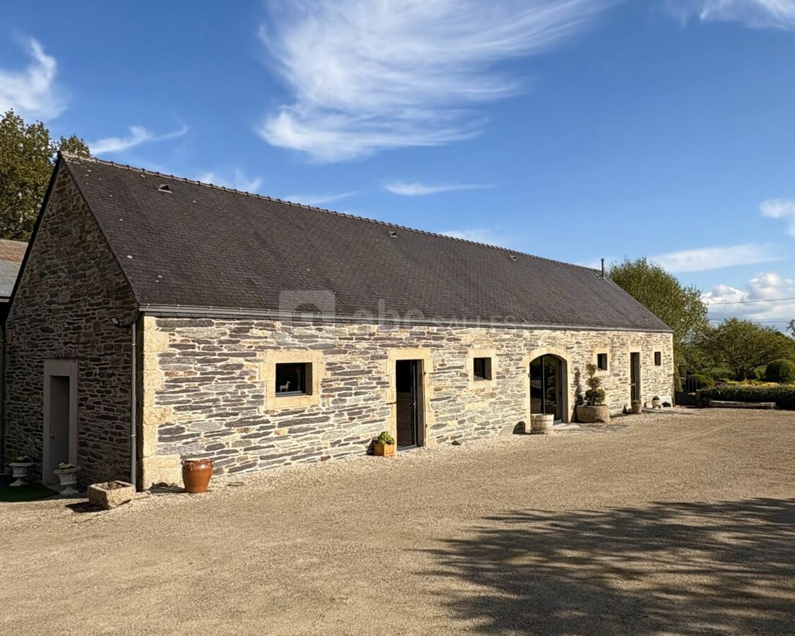 De 135 m² (21,30 m x 6,30 m), de plain pied, dans un cadre authentique et chaleureux, avec poutres apparentes et pierres ardoisées.