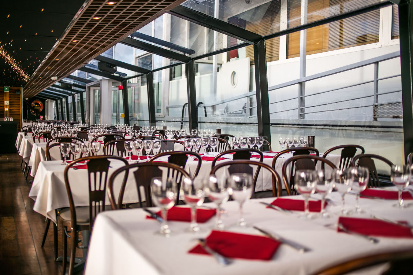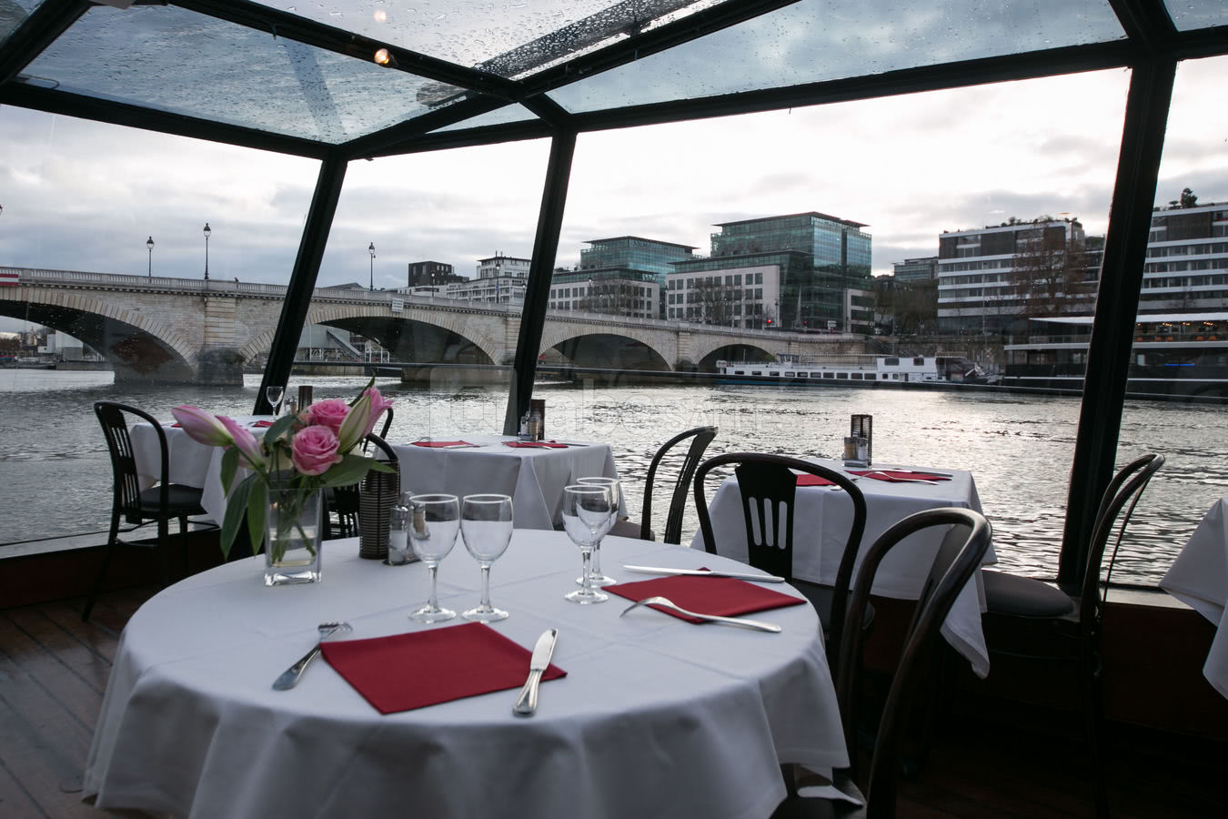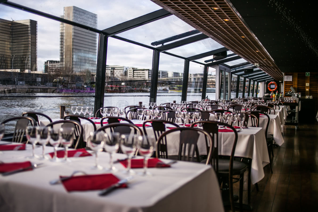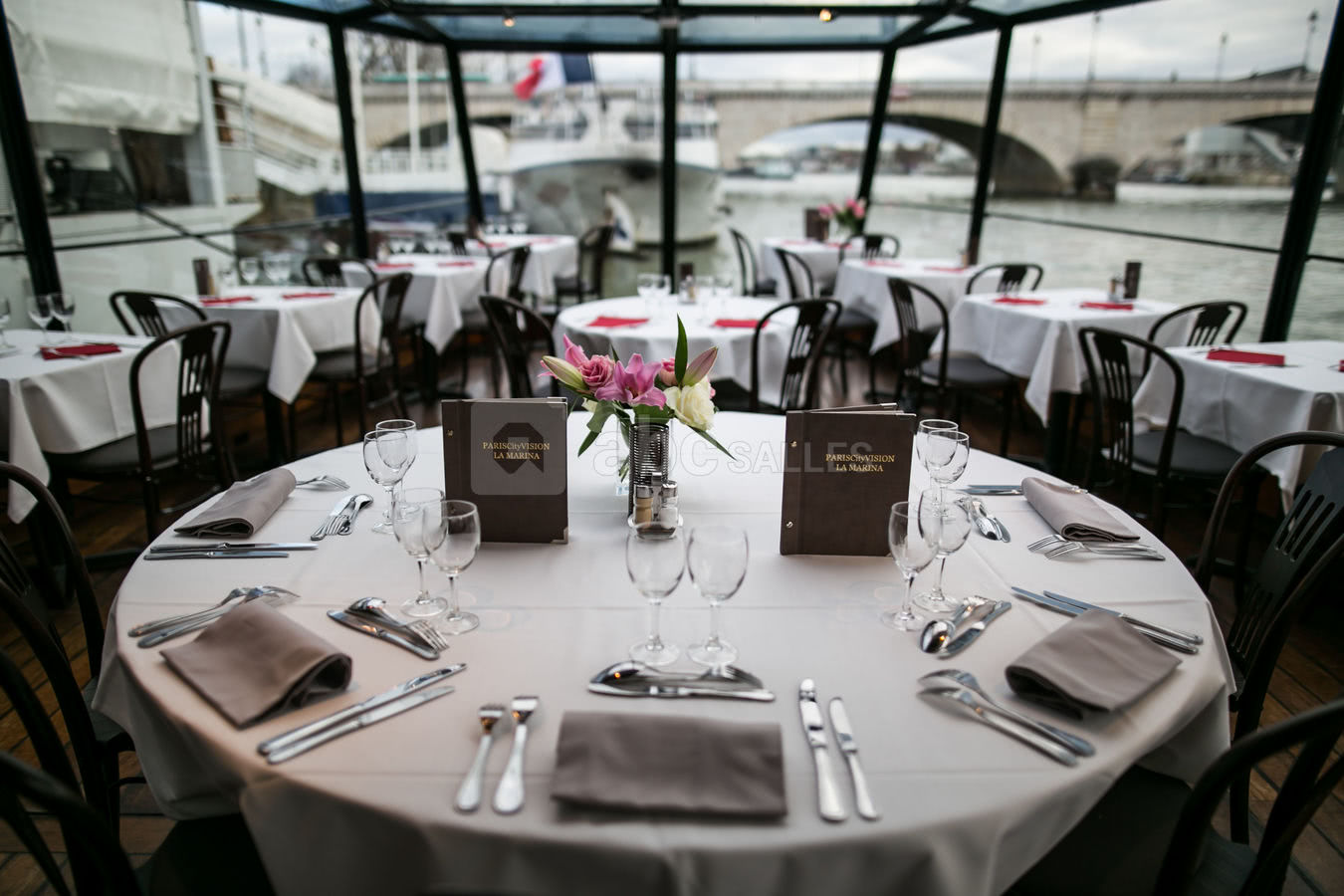 La compagnie PariscityVision la Marina, propose 6 espaces privatisables pour l'organisation de vos événements privés. Dans un lieu atypique sur la Seine, à quai ou en croisière, notre chef vous proposera un cocktail dînatoire, un dîner assis raffiné. Profitez de cette parenthèse magique sur la Seine pour célébrer un événement, inviter vos équipes ou vos clients. Embarquement Port de Bercy ou nous disposons d'un parking gratuit. nous ne proposons pas de location sèche de salle.
