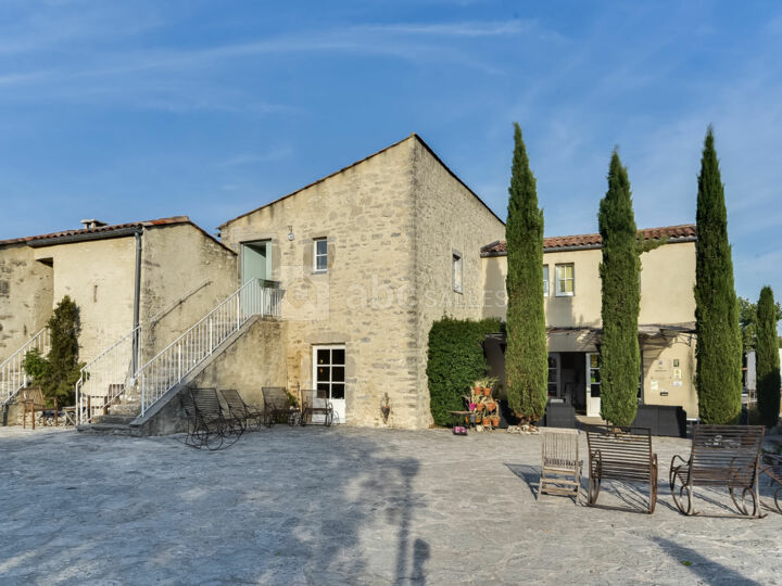 Bâti dans de la pierre vieille de 400 ans, le Mas des Baumes s’érige avec harmonie au sein d’une végétation typiquement méditerranéenne.