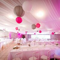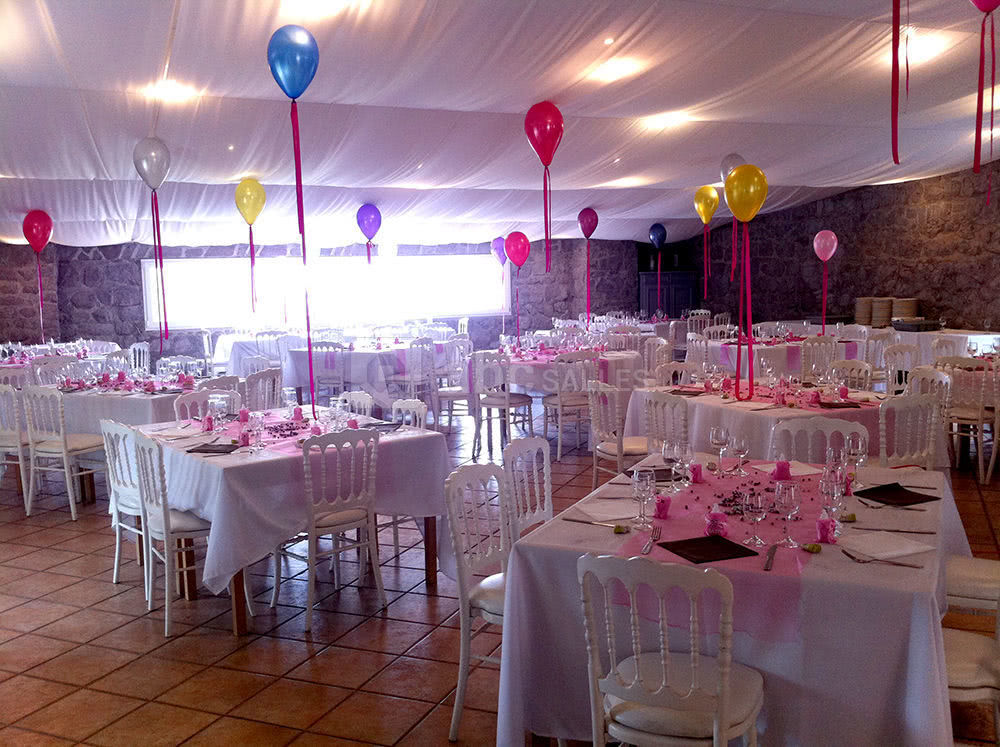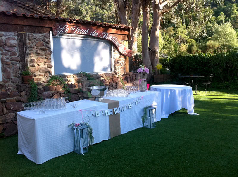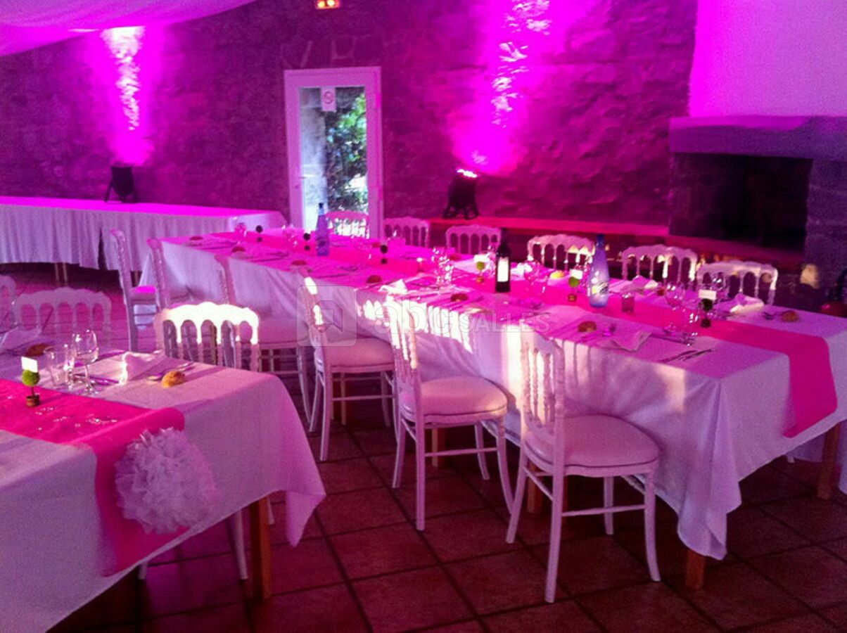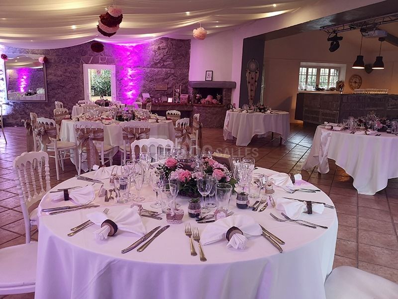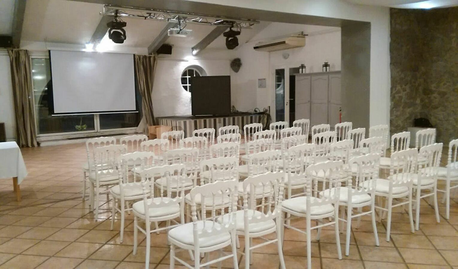 La salle du Mas des Bartavelles est toute en pierre, sans pilier et avec climatisation et peut recevoir 180 personnes assises et 150 en conservant une piste de danse. A votre disposition également une terrasse couverte de 100 m² et un jardin de plus de 150 m². A l'arrière de la salle, une esplanade de 250 m² pouvant accueillir vos cocktails ou cérémonies laïques avec une vue imprenable sur l'Esterel et un aperçu mer cette salle est également climatisée, et à la lumière du jour.